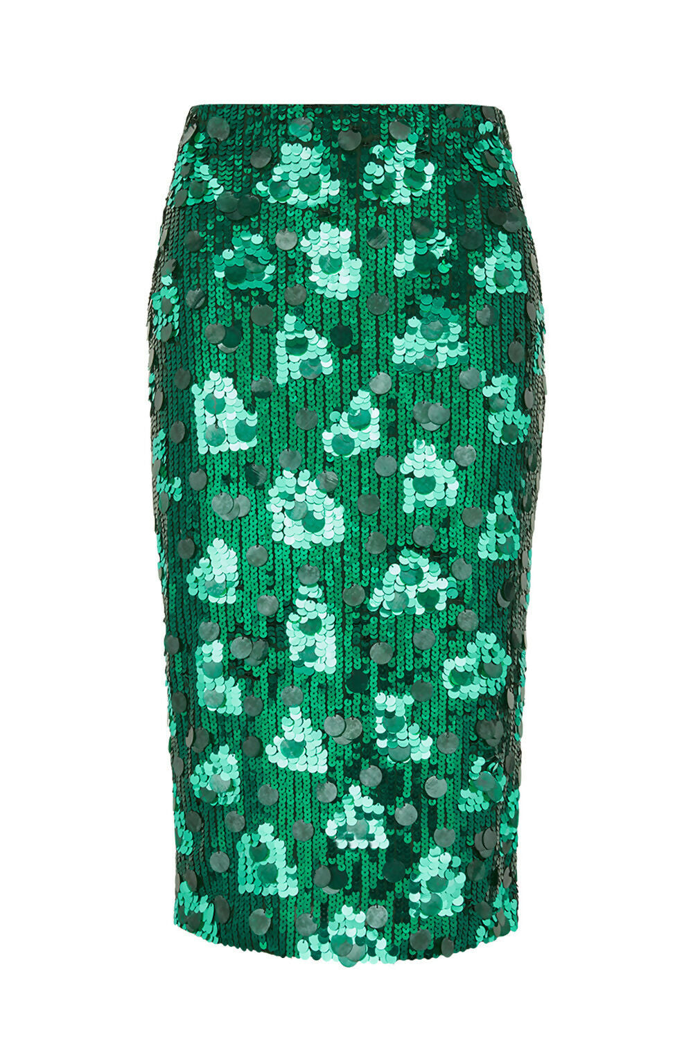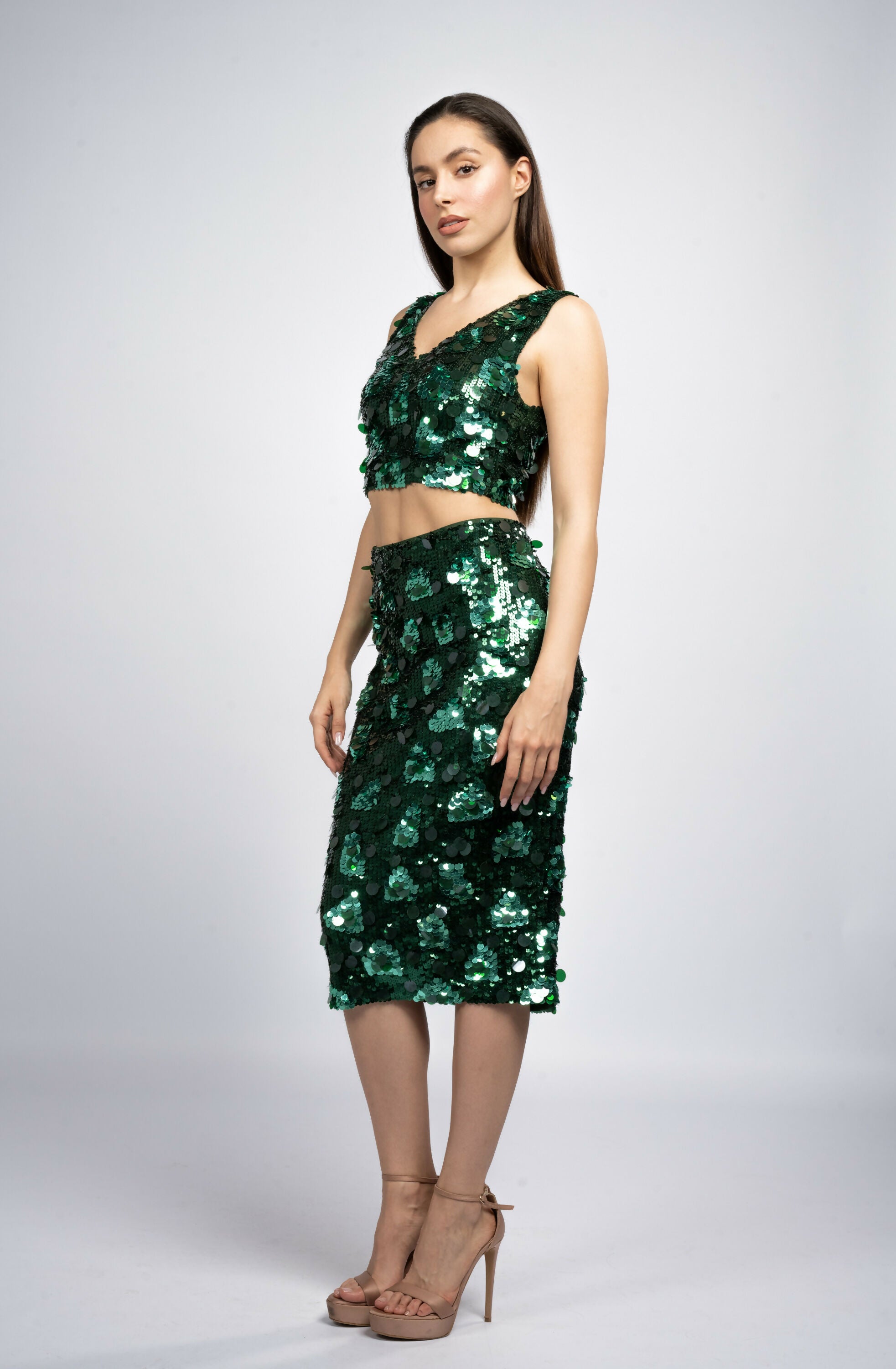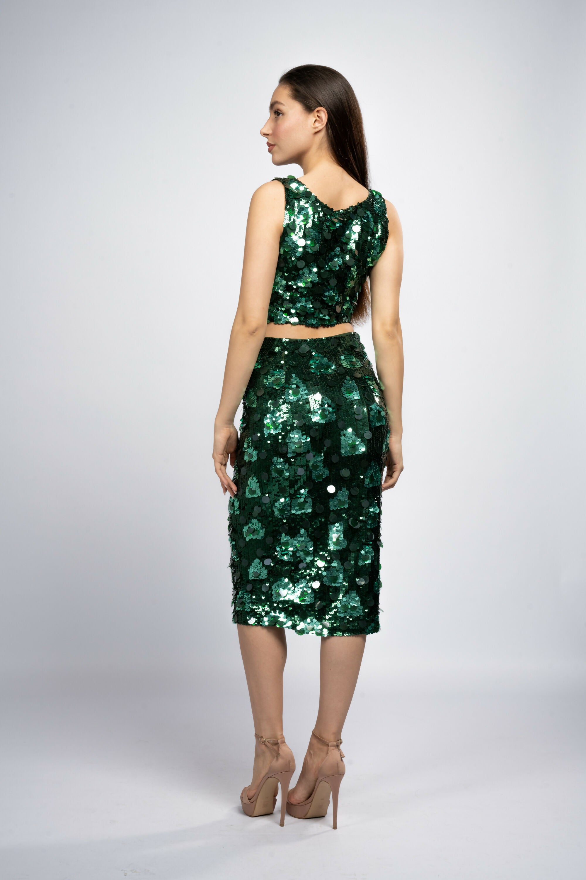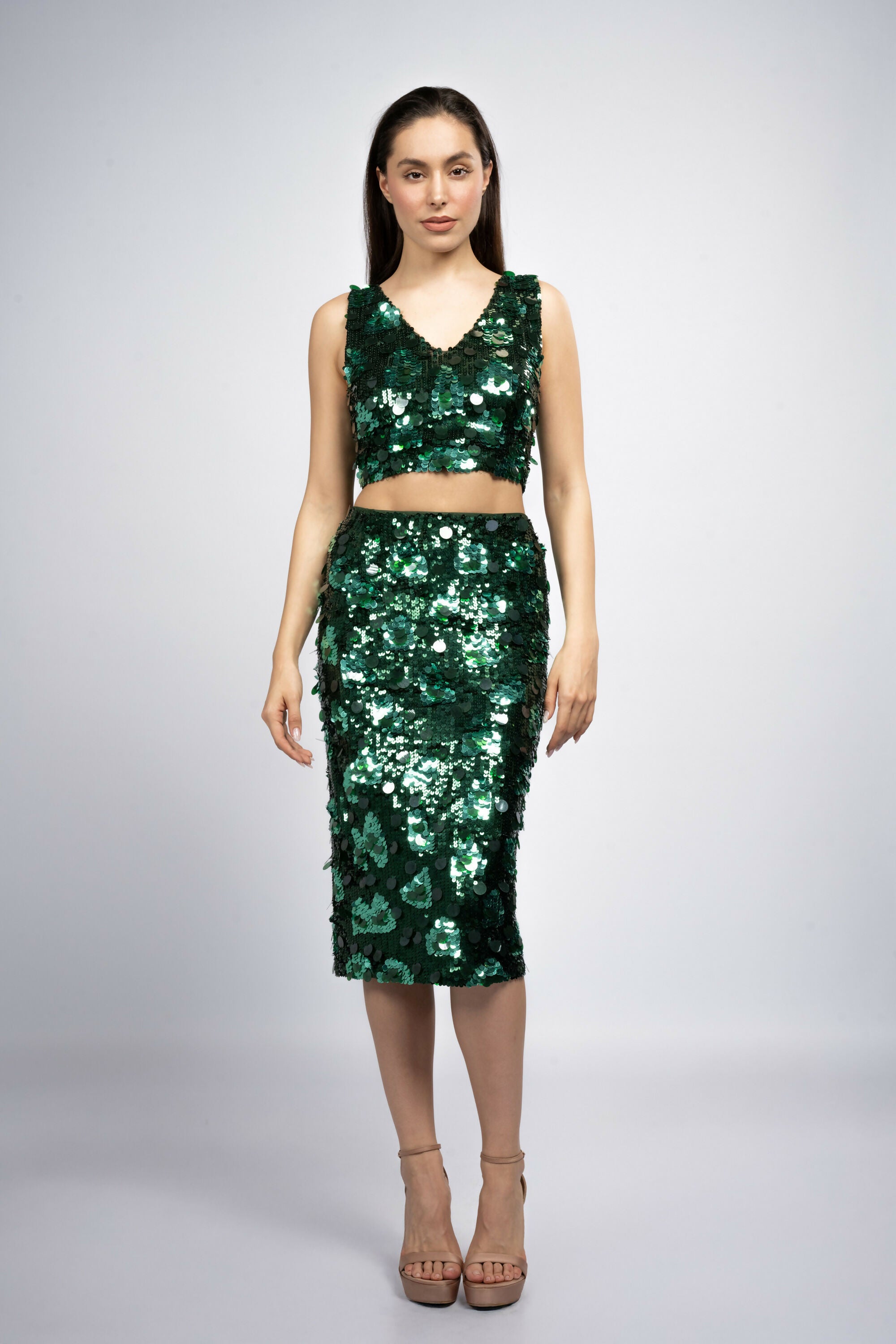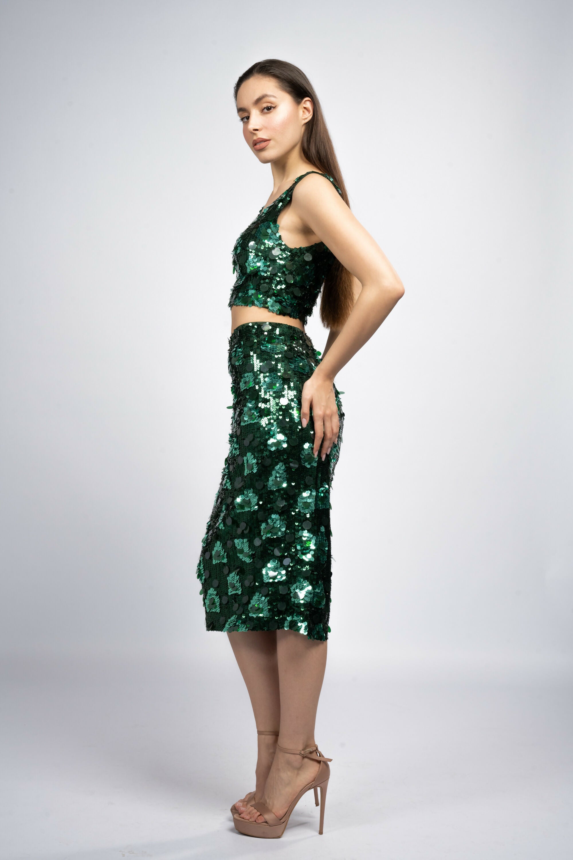 Fustă midi creion damă cu paiete verde P.A.R.O.S.H.