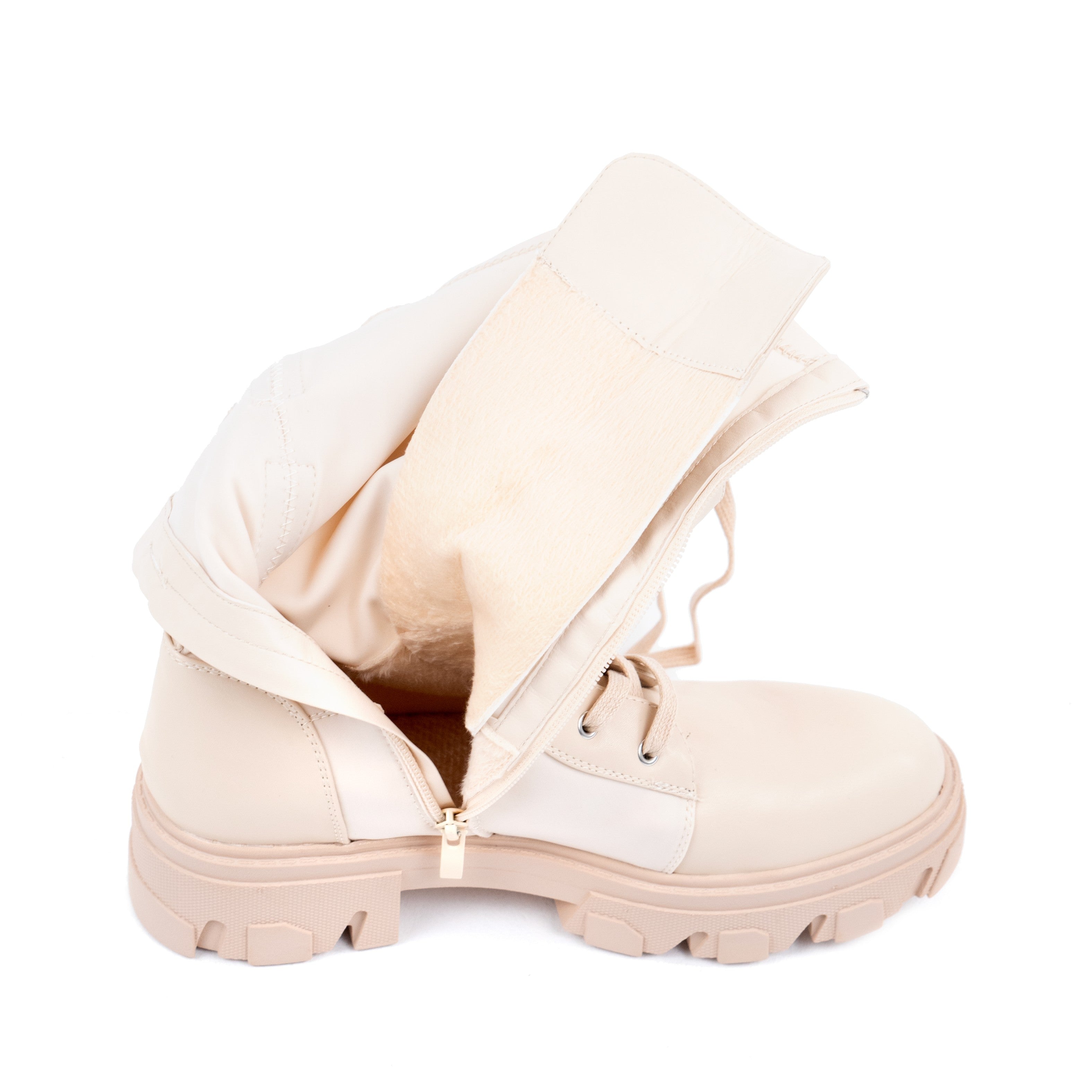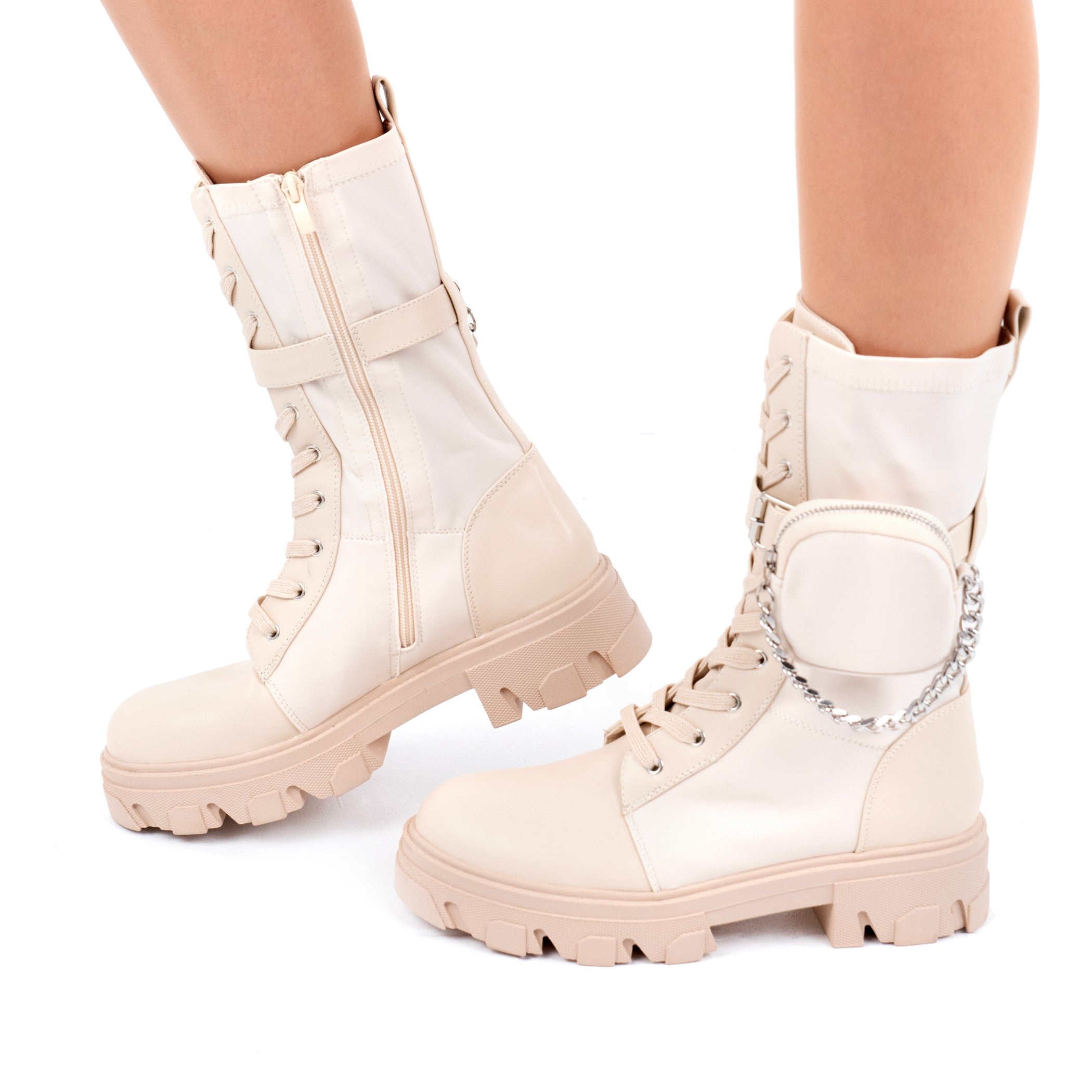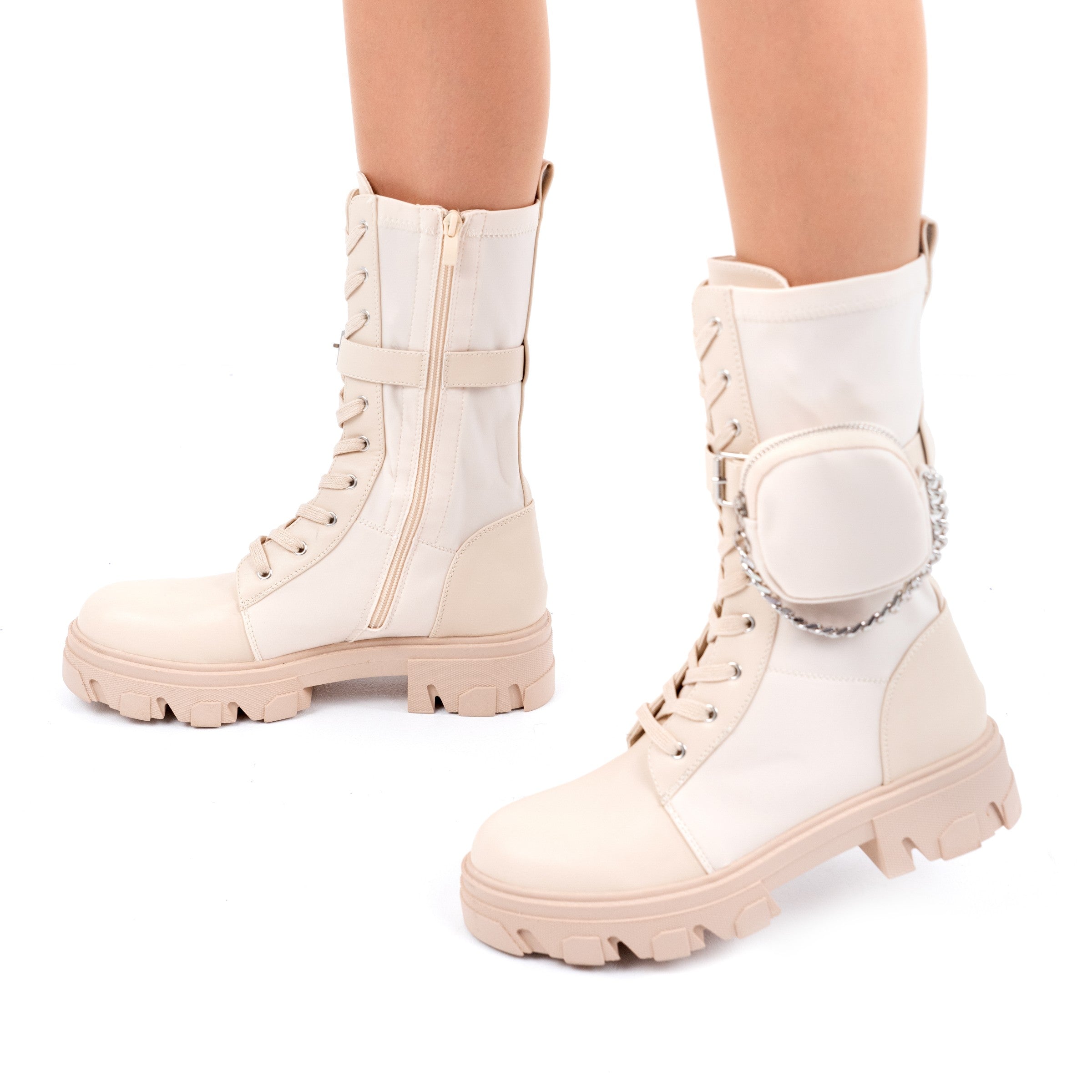 Ghetele damă crem Isadora sunt alegerea ideală pentru femeile care își doresc un model modern, comod și extrem de versatil pentru sezonul rece. Realizate din piele ecologică și material textil, acestea combină rezistența cu flexibilitatea, oferind o purtare plăcută întreaga zi. Modelul se remarcă prin designul său urban și prin detaliile atent lucrate, iar nuanța de crem adaugă un aer elegant și ușor de asortat în orice garderobă. Talpa groasă de 4,5 cm asigură stabilitate și un plus de înălțime, fiind perfectă pentru plimbări, ieșiri în oraș sau activități de zi cu zi. Sistemul de închidere dublu — fermoar lateral și șiret — facilitează încălțarea rapidă și permite ajustarea perfectă pe picior. Accesoriul detașabil, tip mini-buzunar cu lanț metalic, completează designul și oferă o notă fashion statement. Interiorul călduros contribuie la confort în zilele mai reci, iar silueta înaltă protejează glezna și conferă susținere suplimentară. Ghetele Isadora sunt create pentru femeile care vor să îmbine funcționalitatea cu un stil actual, modern și ușor extravagant, fiind un model must-have pentru sezonul de toamnă-iarnă.