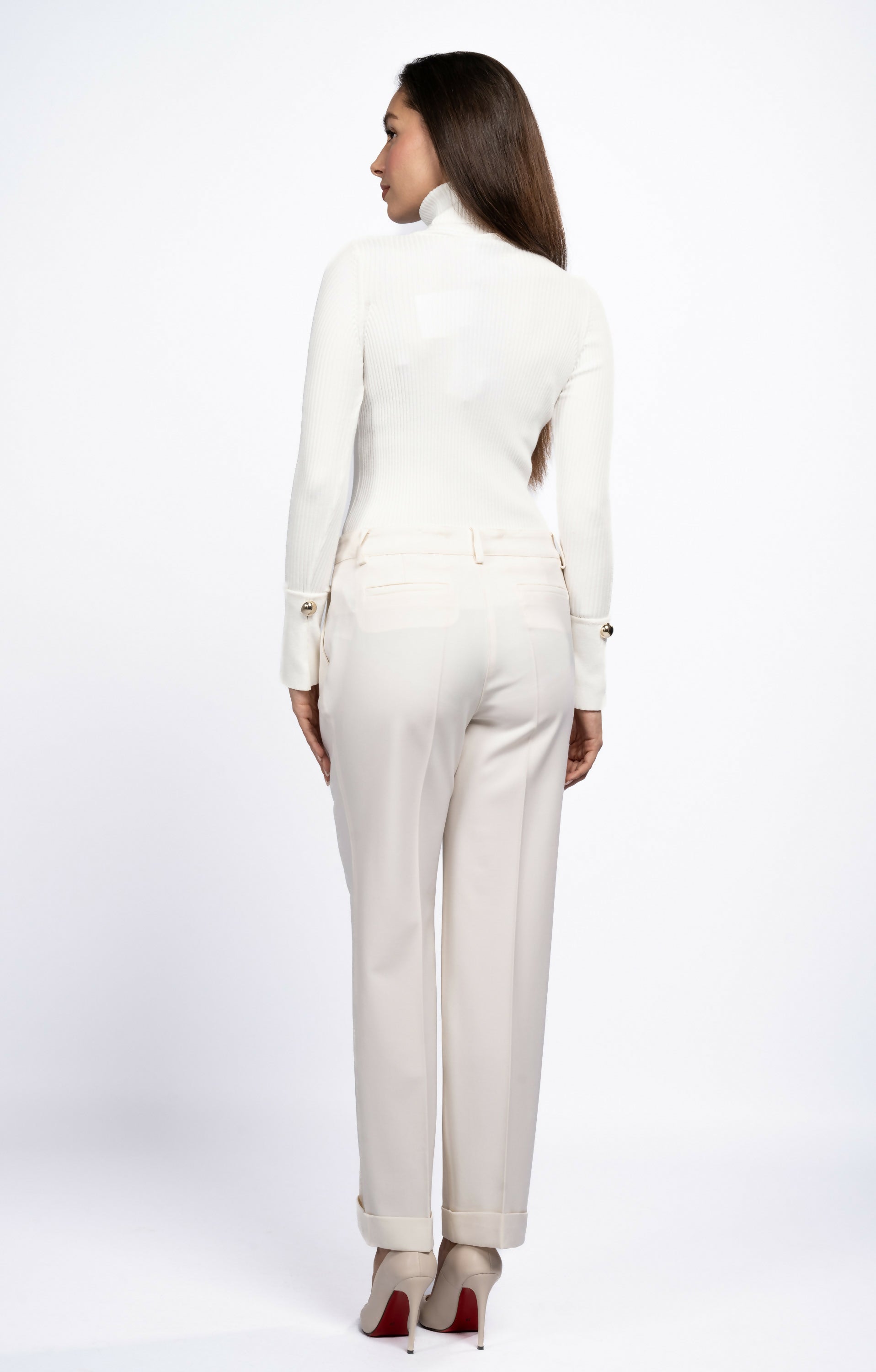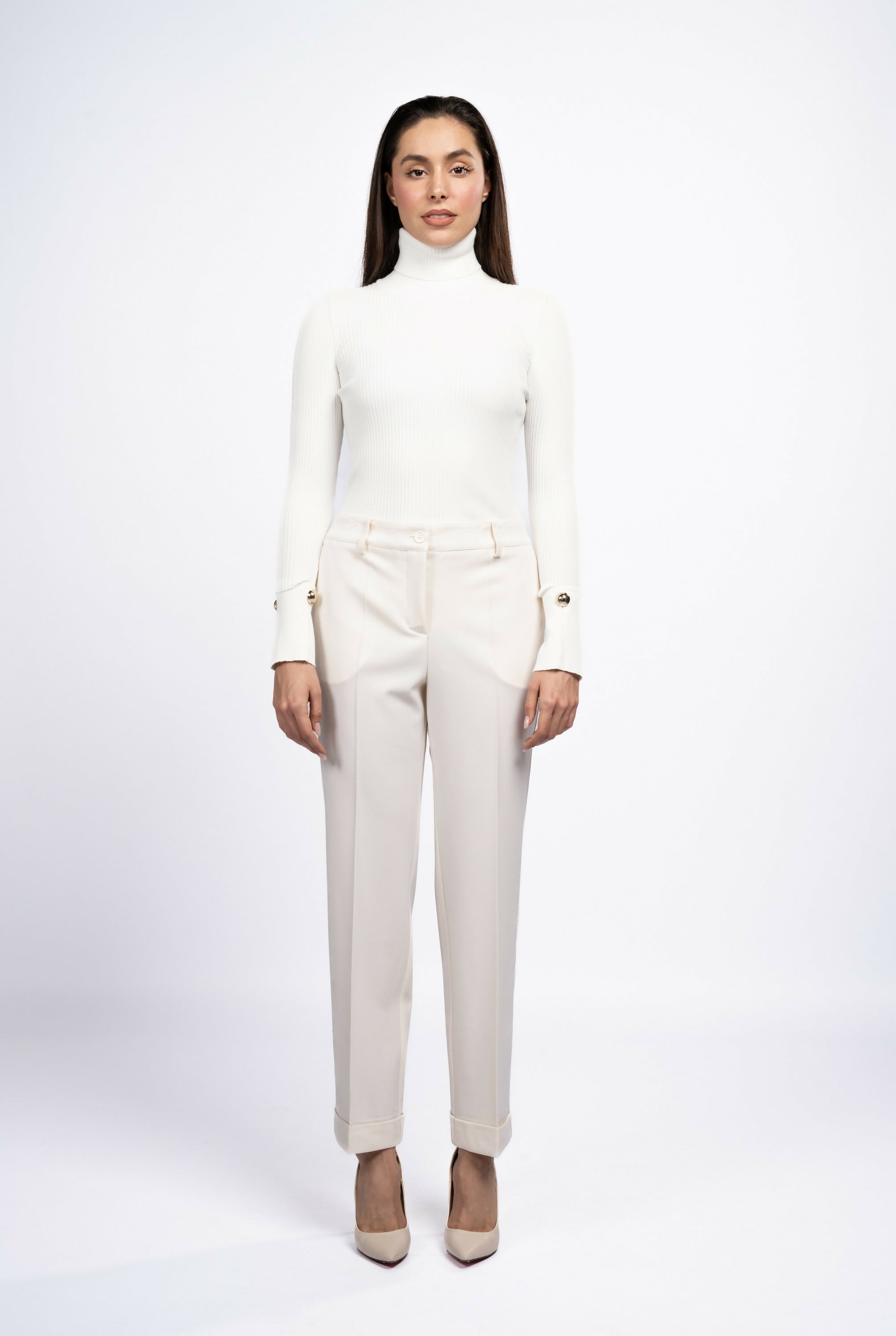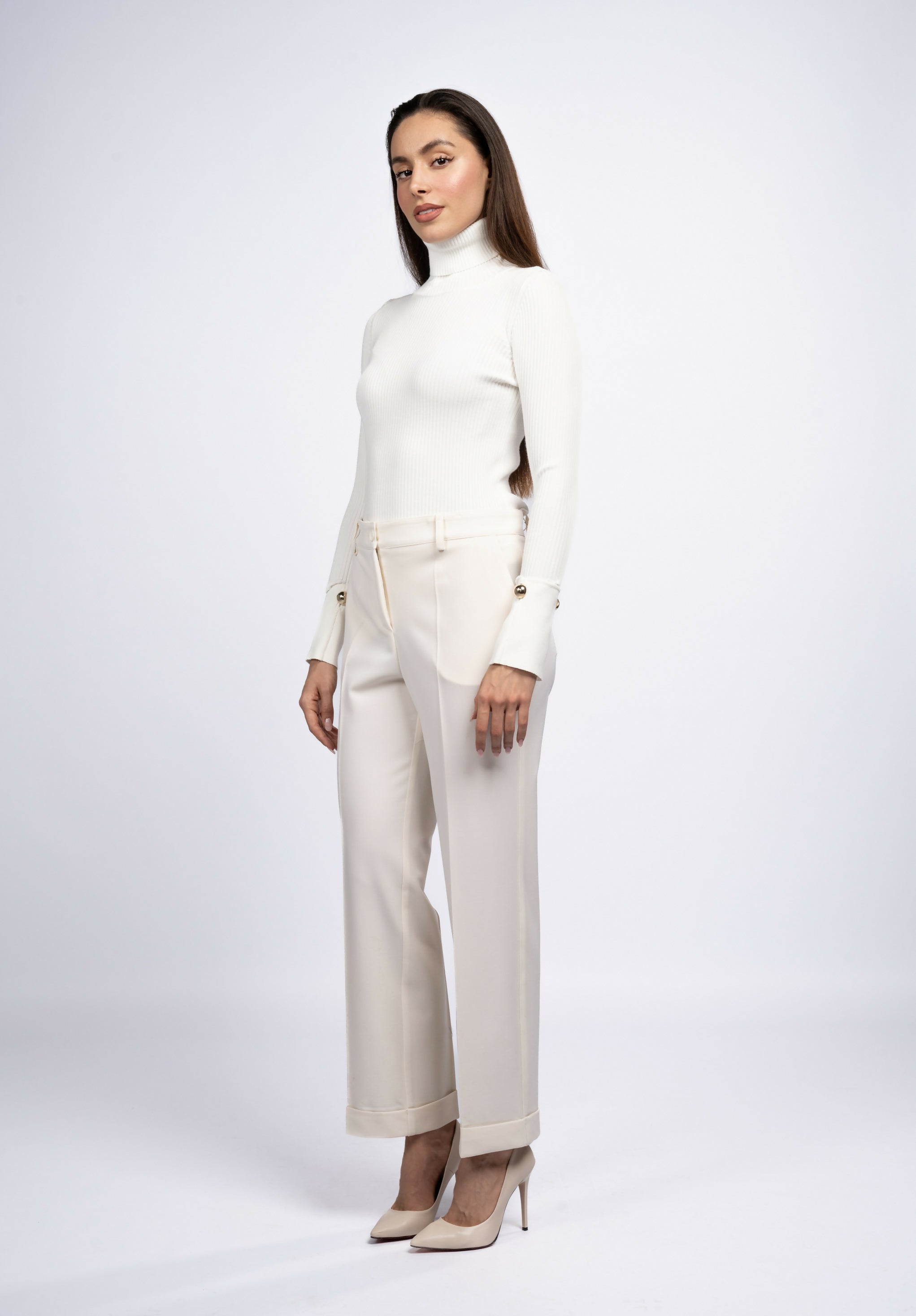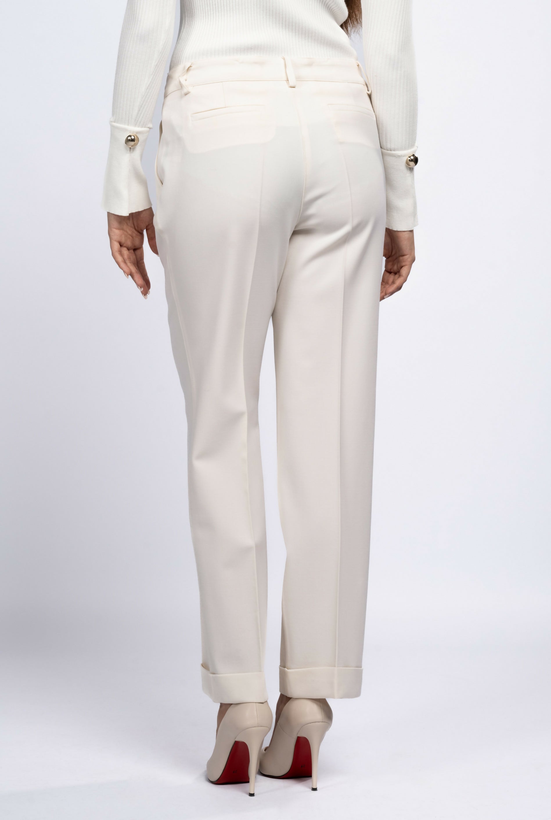 Pantaloni eleganți damă lână crem P.A.R.O.S.H.