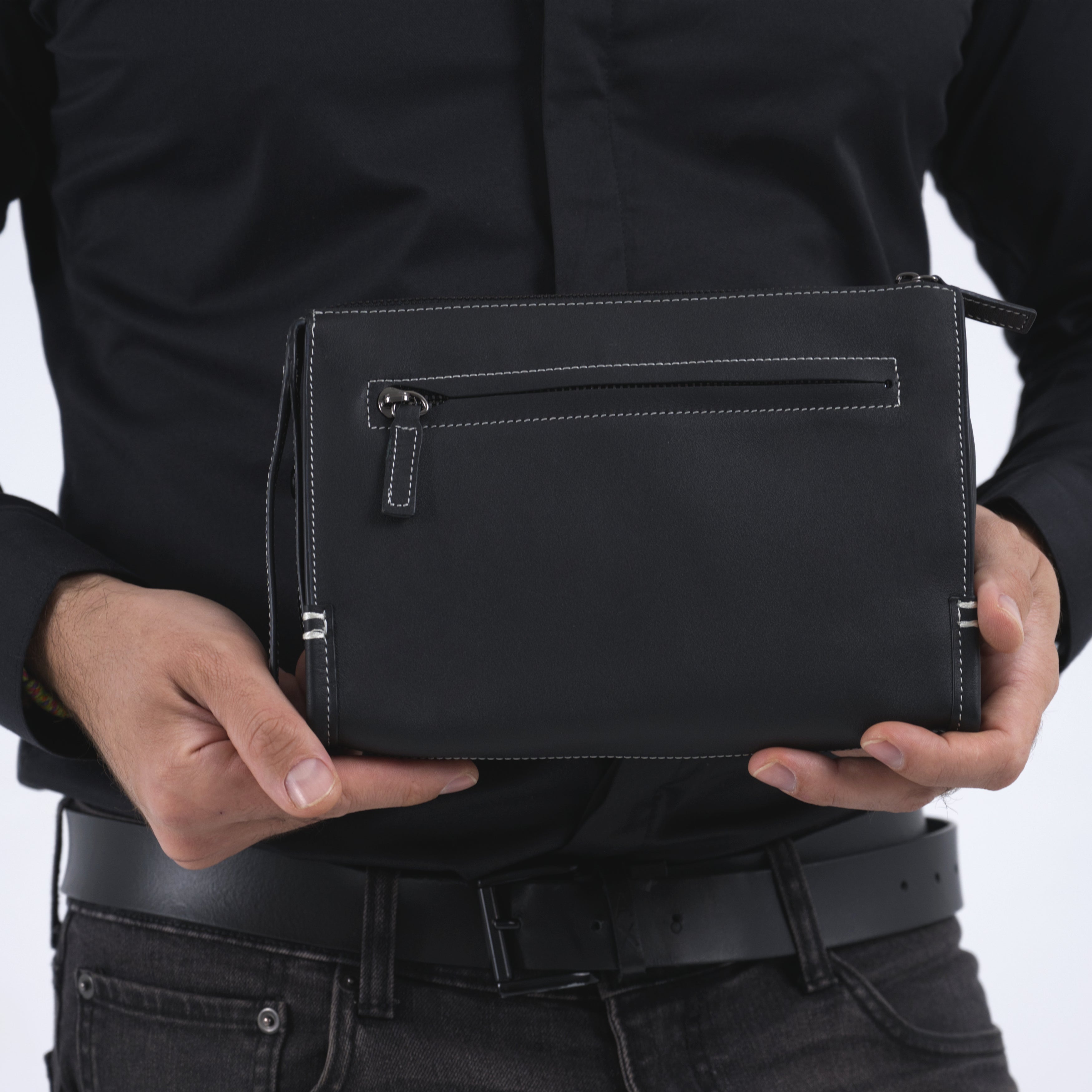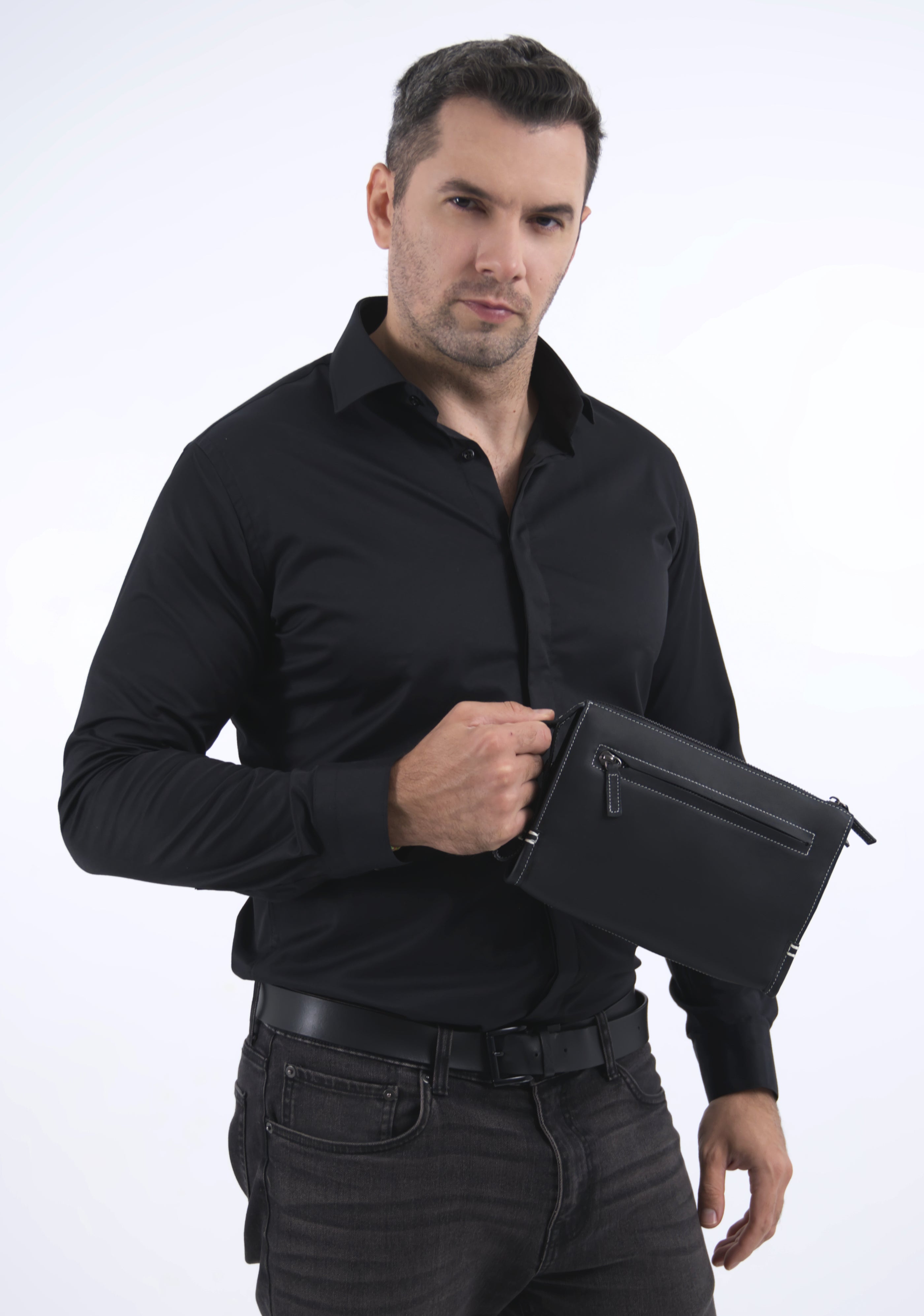 Geanta borseta barbati piele naturala negru Arny