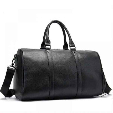 Aceasta geanta de voiaj unisex este fabricata din piele naturala de cea mai buna calitate si este disponibila intr-o nuanta eleganta de negru. Design-ul sau clasic si rafinat este potrivit pentru orice ocazie si poate fi purtat cu usurinta de catre barbati si femei. Cu o capacitate generoasa de depozitare, aceasta geanta este perfecta pentru calatorii de afaceri. In plus, calitatea sa superioara garanteaza durabilitate si rezistenta in timp.