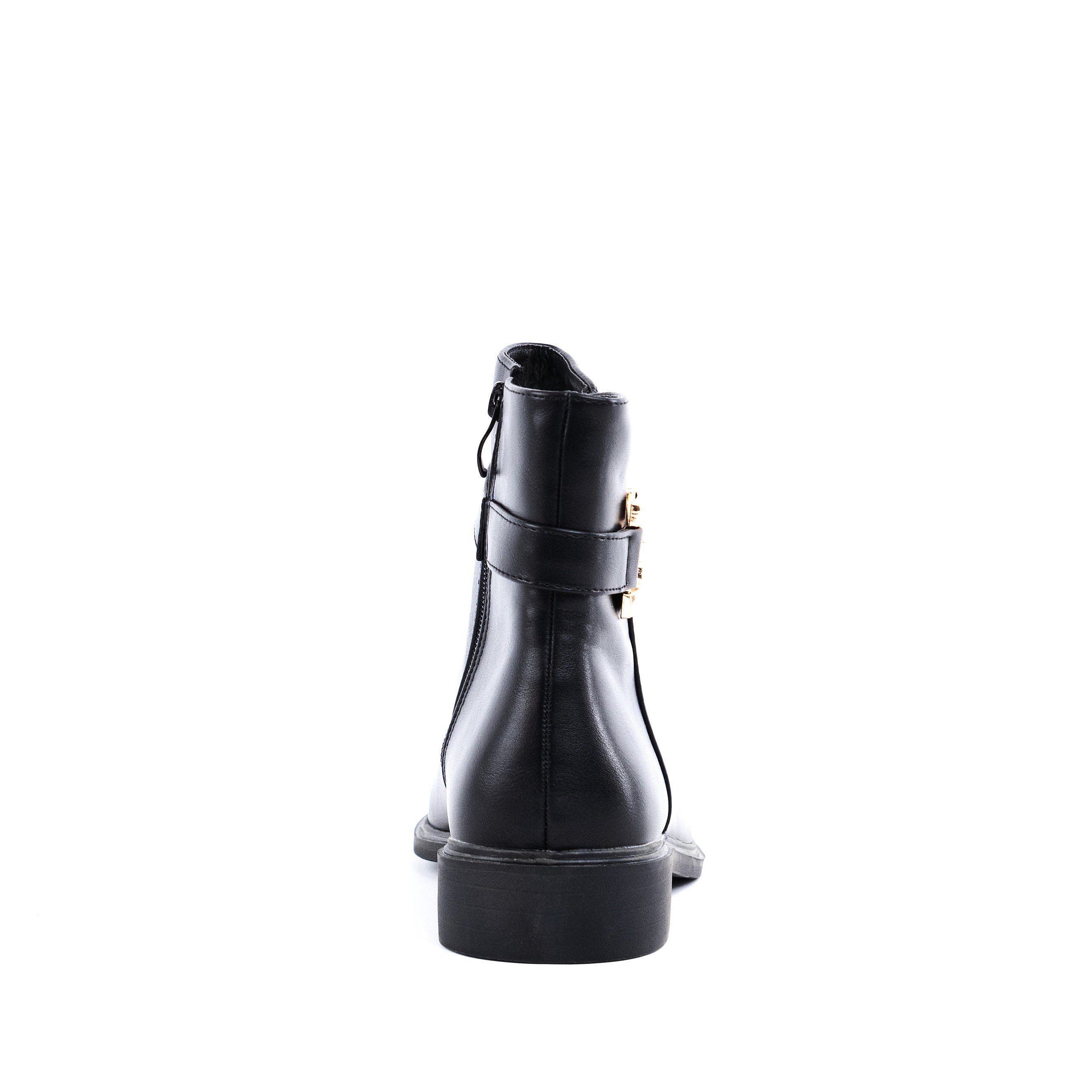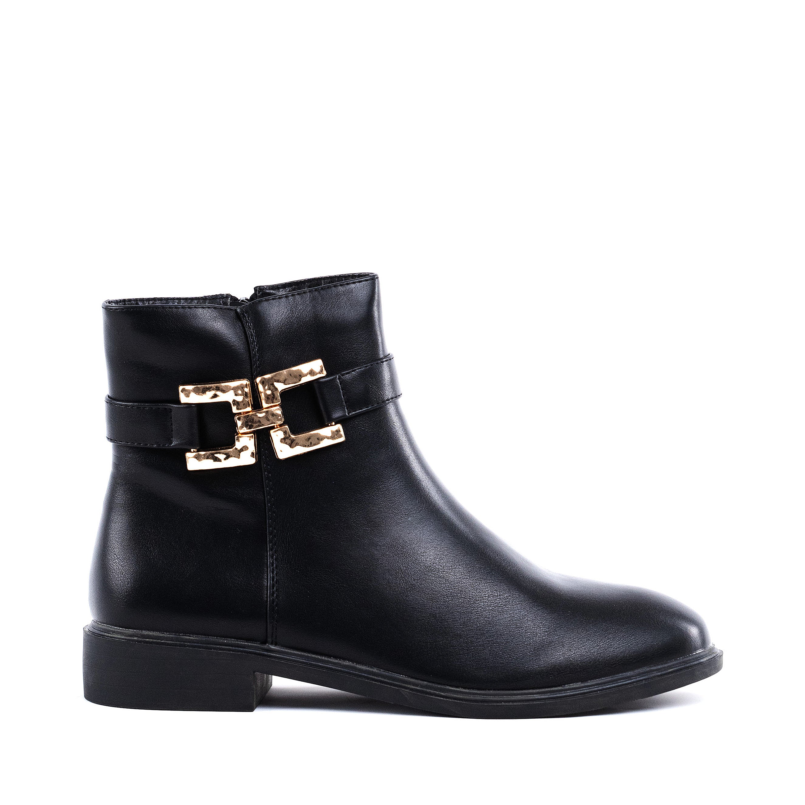Ghetele damă negre Aziza se remarcă printr-un design simplu și elegant, pus în valoare de detaliul decorativ auriu cu aspect metalic, care adaugă o notă rafinată și feminină. Realizate din piele ecologică cu finisaj neted, aceste ghete oferă confort și versatilitate, fiind ușor de integrat în ținutele de zi cu zi. Talpa de 3,5 cm asigură stabilitate și o purtare plăcută pe tot parcursul zilei, iar sistemul de închidere cu fermoar permite o încălțare rapidă și practică. Modelul Aziza este ideal pentru ținute casual, de la blugi și pulovere, până la rochii sau pantaloni office, pentru un look echilibrat și modern.
