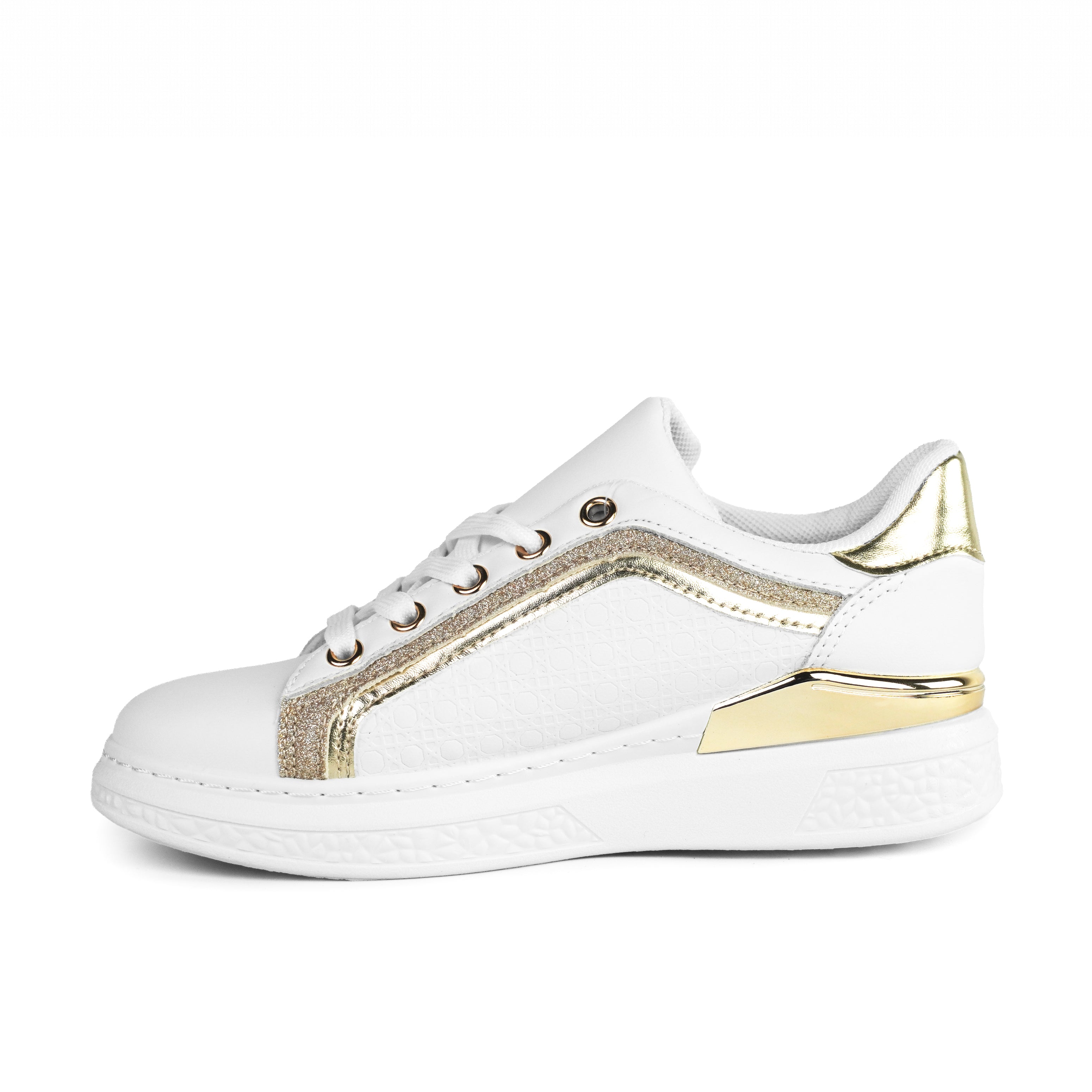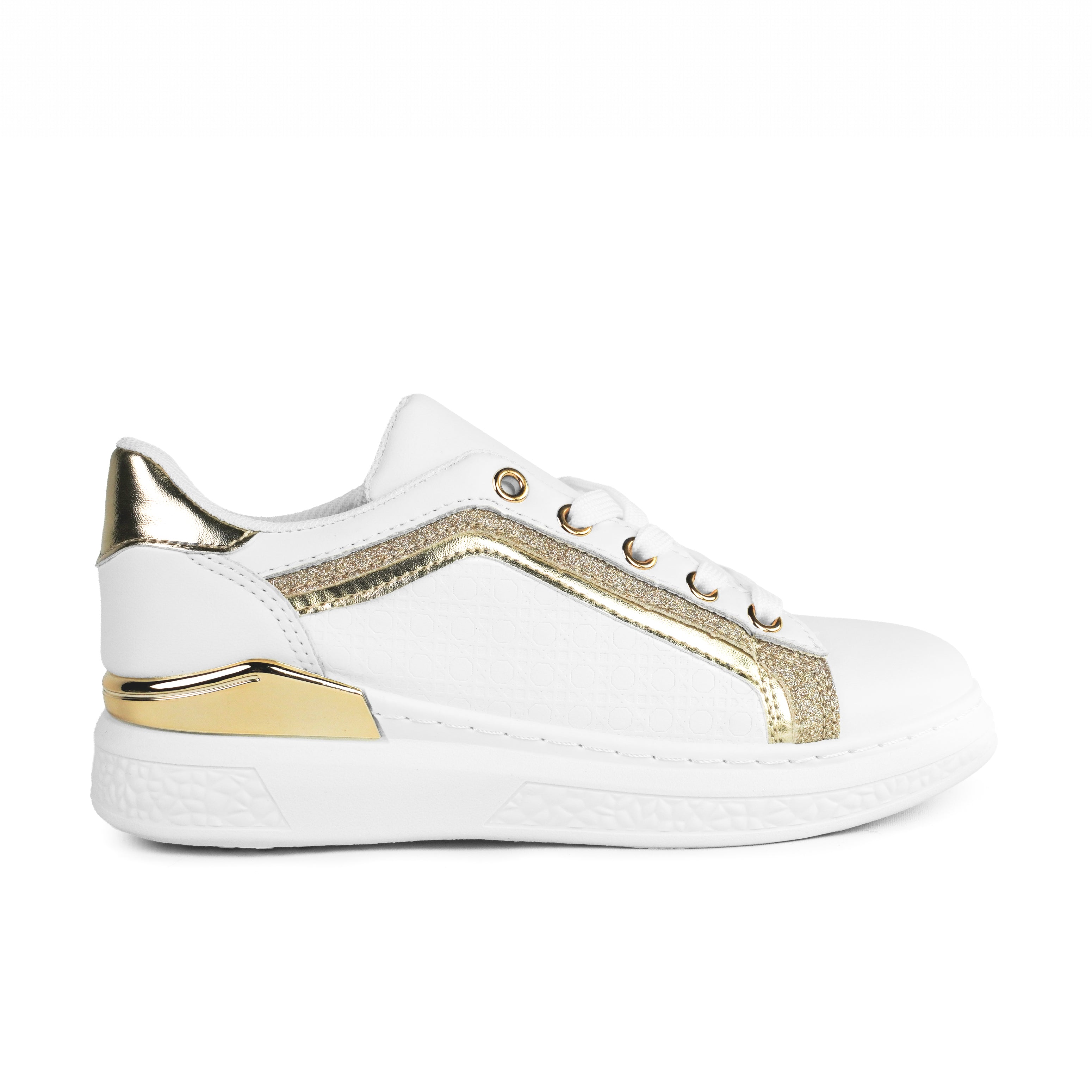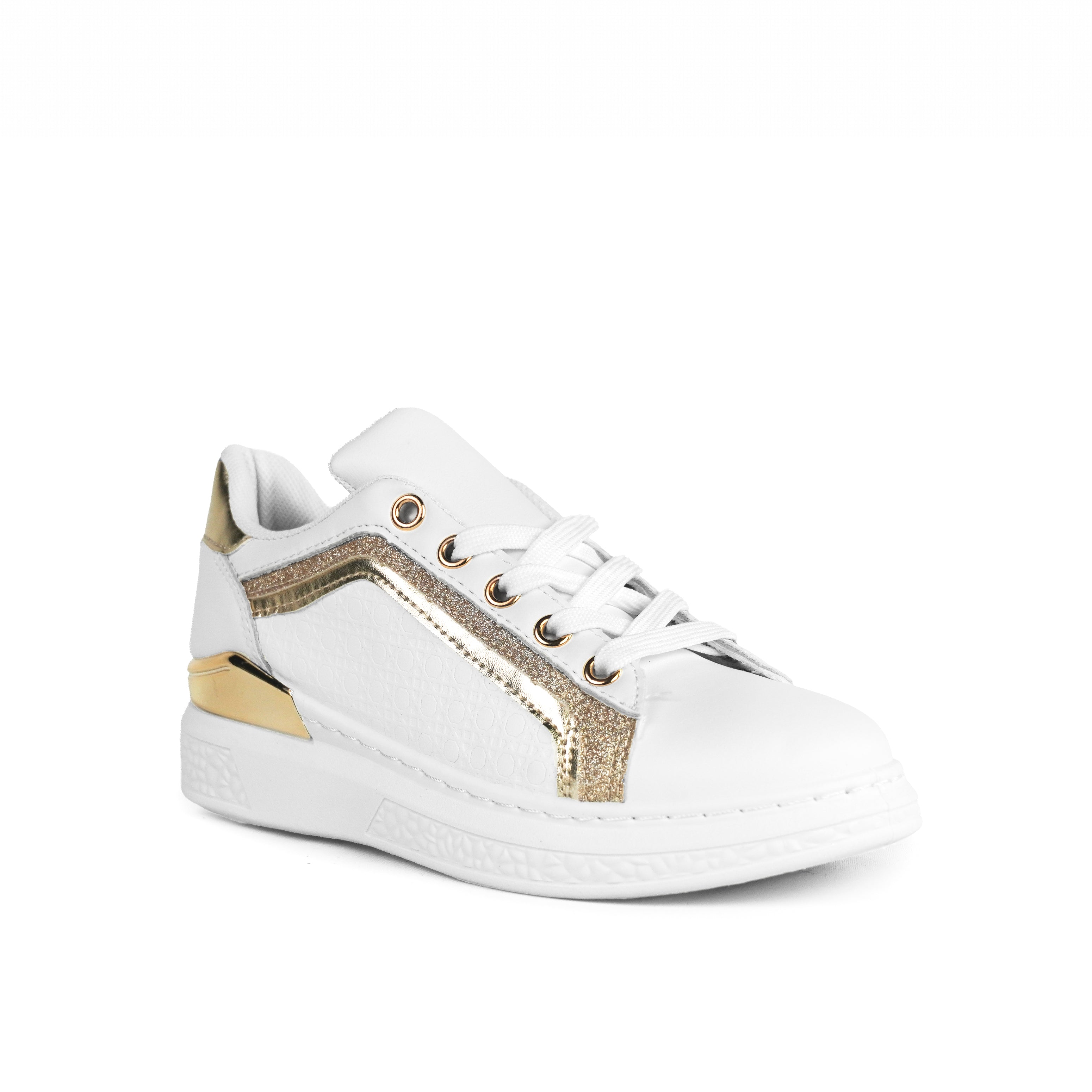 Pantofii sport pentru fete alb Gianna sunt alegerea ideală pentru fetițele care iubesc un stil elegant, dar modern. Cu un design rafinat, accentuat de inserții aurii și detalii cu efect strălucitor, acești pantofi adaugă o notă de glamour oricărei ținute. Realizați din piele ecologică de înaltă calitate, oferă confort optim și permit piciorului să respire pe tot parcursul zilei. Talpa albă, cu înălțimea de 3 cm, este ușoară și flexibilă, asigurând stabilitate și susținere în timpul mersului. Închiderea clasică cu șiret permite o fixare fermă și personalizată, potrivită pentru orice formă a piciorului. Interiorul moale și branțul confortabil transformă fiecare pas într-o experiență plăcută. Modelul Gianna este perfect atât pentru școală, cât și pentru ieșiri în oraș, evenimente casual sau plimbări zilnice. Cu o combinație de alb imaculat și accente aurii elegante, acești pantofi oferă un look modern, dar și sofisticat. Versatili și stilizați, vor deveni rapid preferații garderobei copilului.