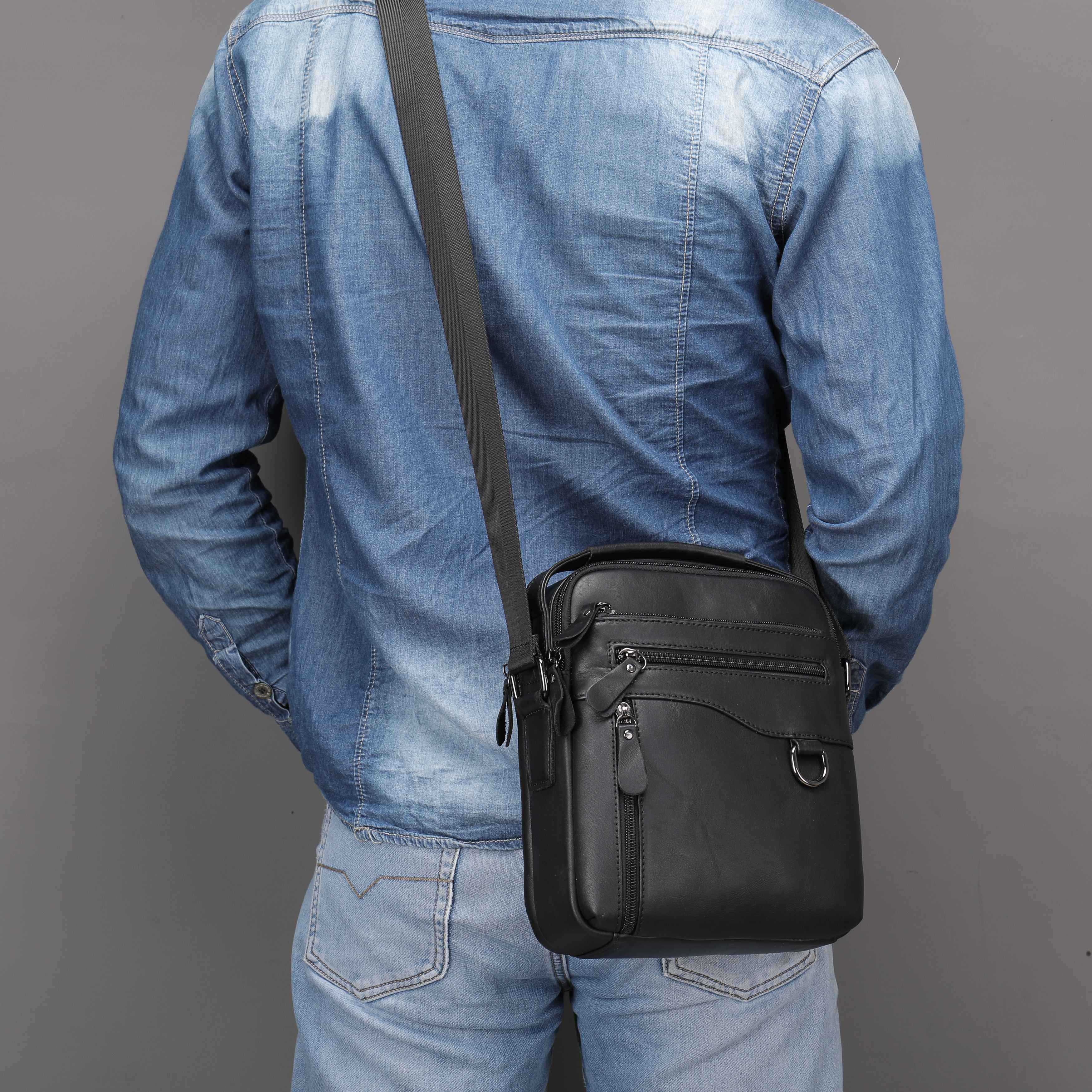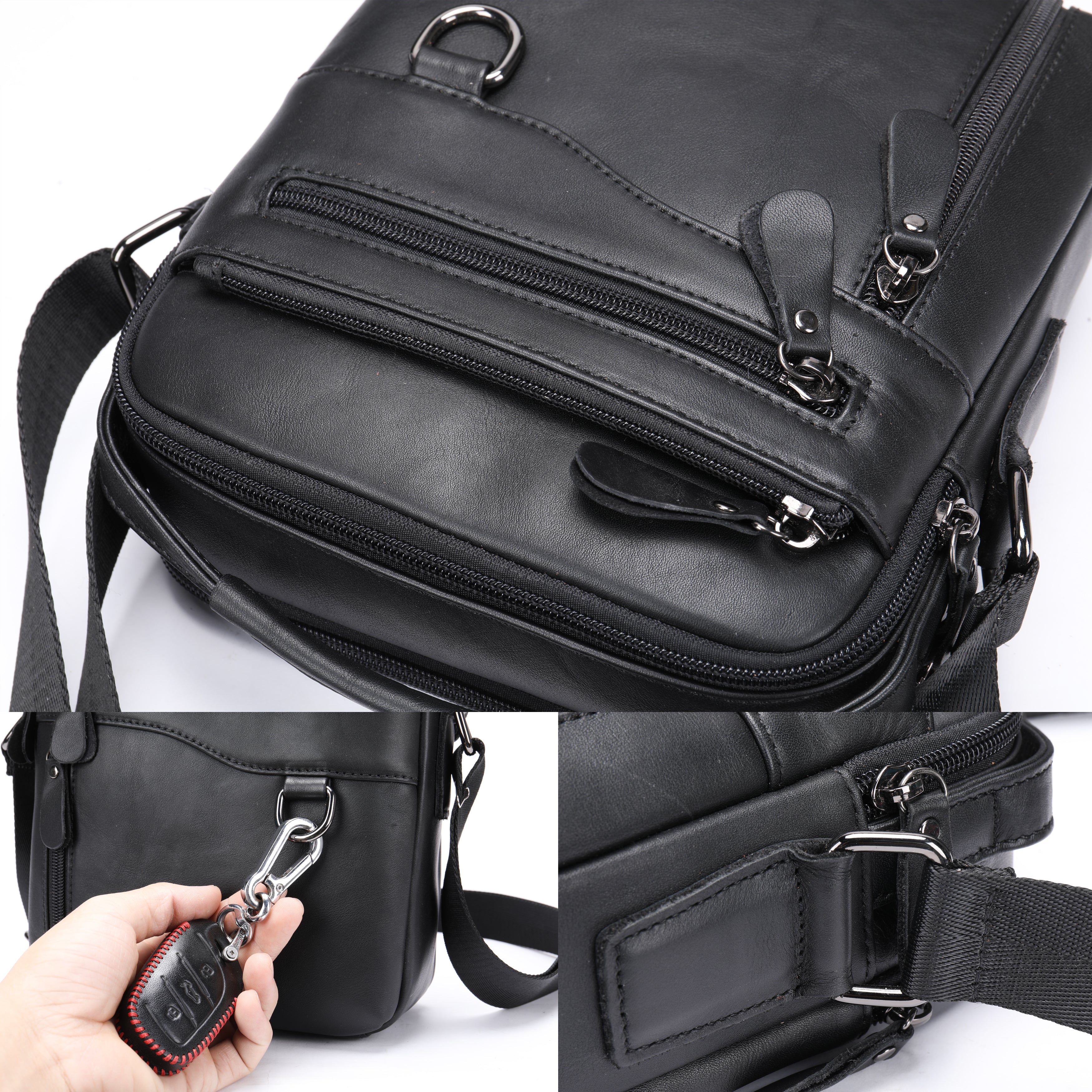 Este realizata din piele naturala, beneficiaza de doua compartimente principale si patru buzunare mai mici, toate exterioare. Se poarta cu ajutorul unei curele ajustabile sau in mana de maner. Este simpla si incapatoare, chiar daca nu este de o dimensiune foarte mare, ai unde sa-ti asezi lucrurile. Se poate adauga oricarei tinute, deci indiferent de look-ul ales astazi, borseta se va potrivi cu siguranta.
