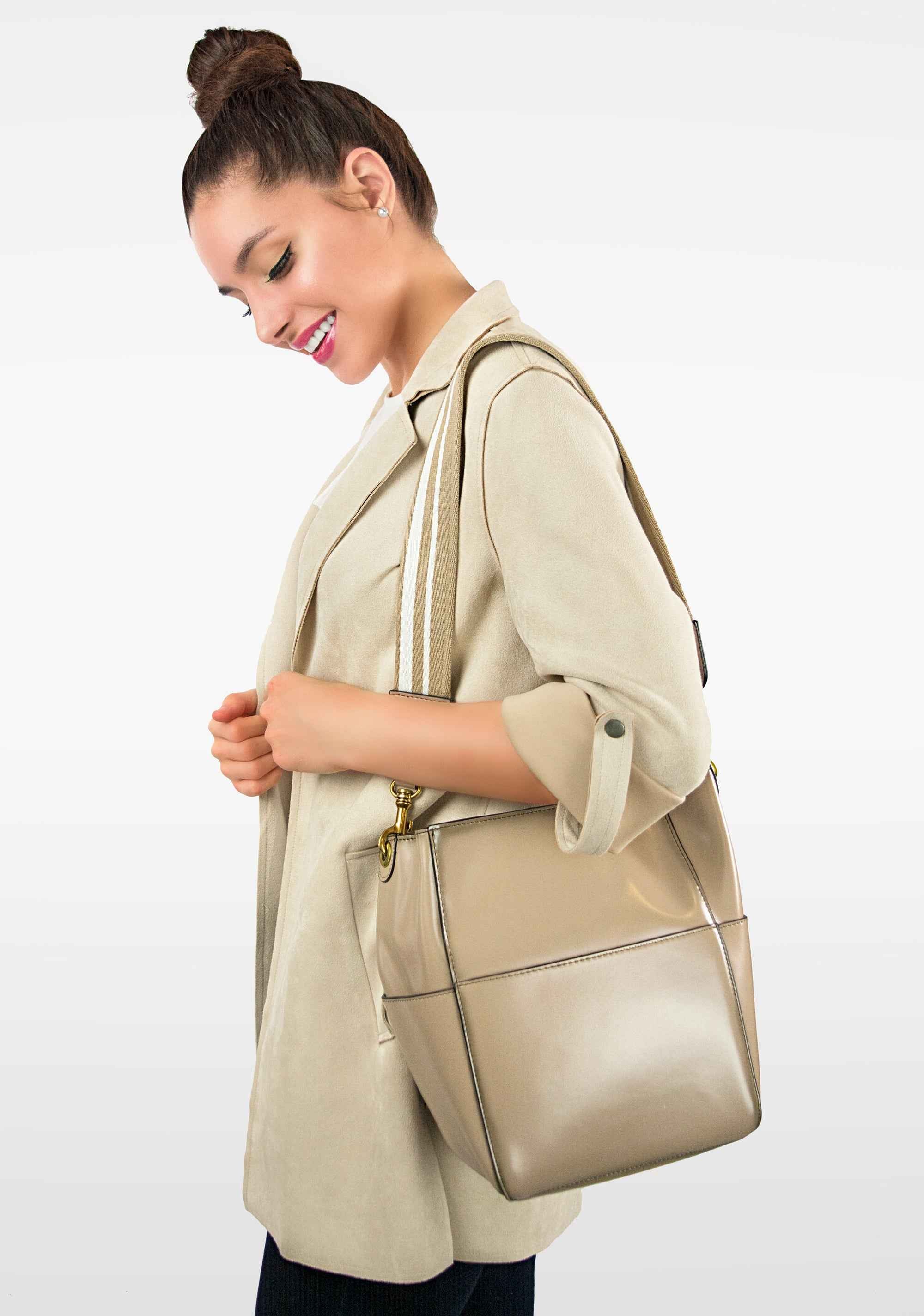 Accesoriile fac diferenta. Geanta bej Anastasia iti va ridica frumusetea vestimentatiei tale si te va face sa te simti gata pentru o noua zi. Datorita modelului simplu este o geanta practica care se poate incadra cu usurinta in mai multe stiluri vestimentare. Este perfecta pentru munca, o iesire in oras sau o calatorie. Garderoba ta va castiga un plus de rafinament cu aceasta geanta.