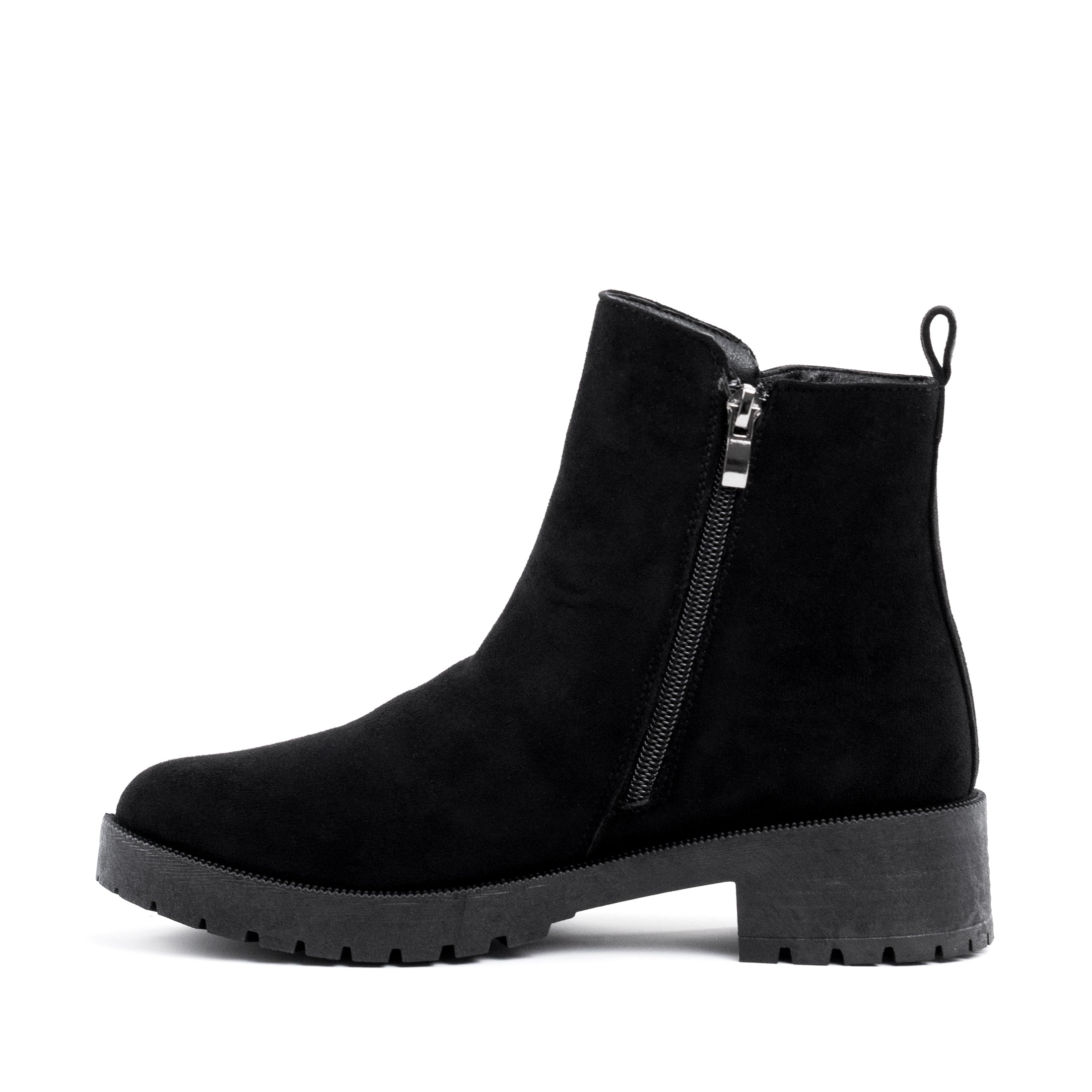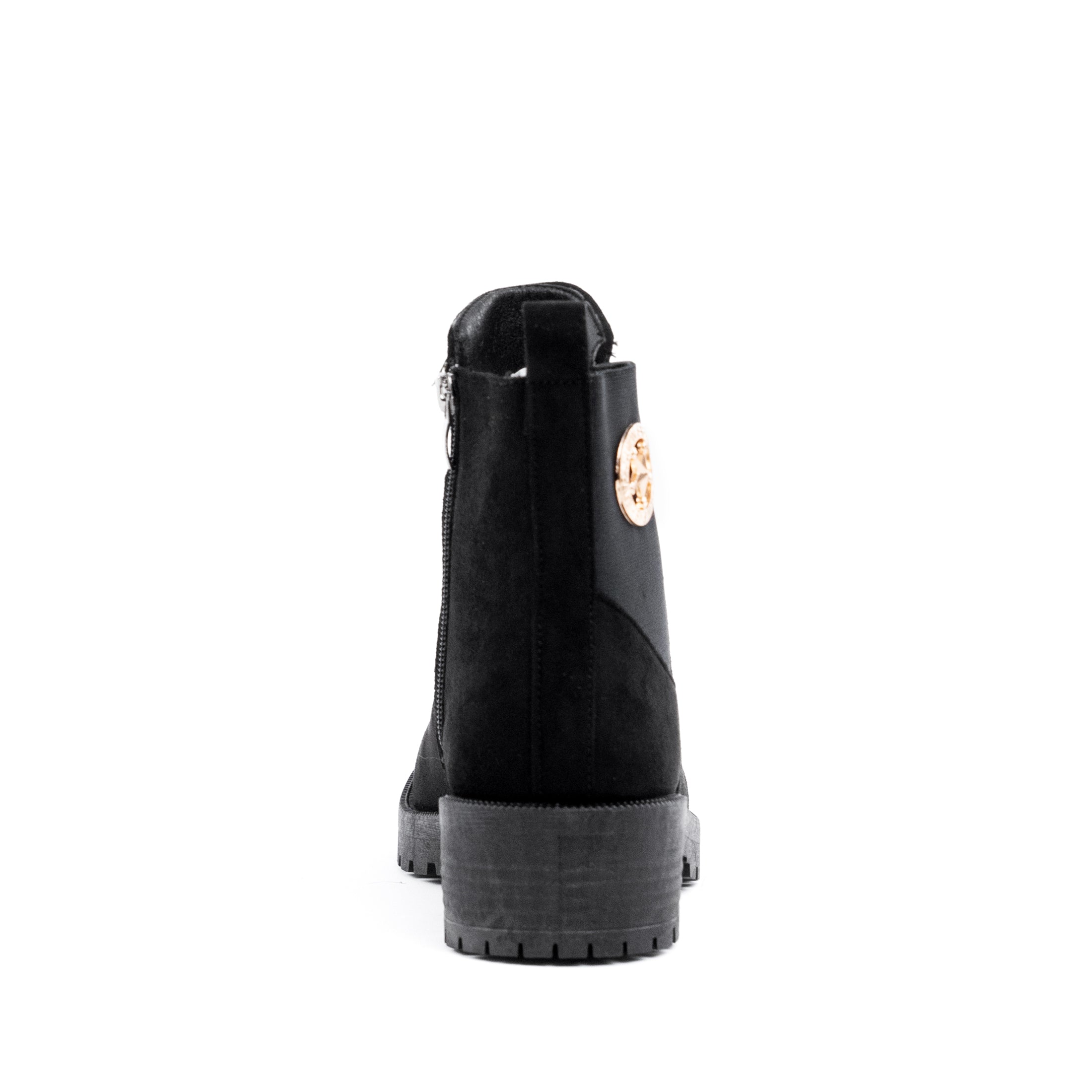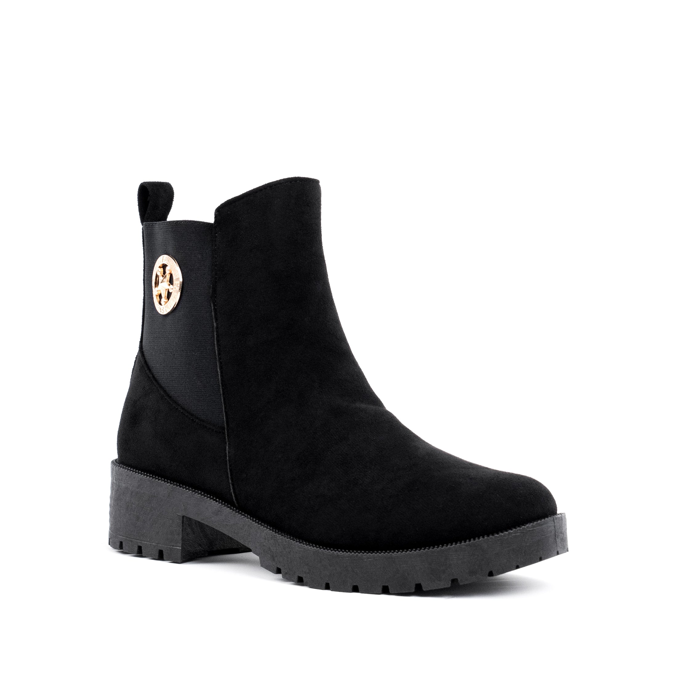 Ghetele damă negre Aura sunt alegerea perfectă pentru femeile care își doresc o încălțăminte elegantă, versatilă și confortabilă, potrivită atât pentru ținutele de zi cu zi, cât și pentru cele office sau casual-chic. Realizate din piele ecologică întoarsă, acestea au o textură fină și un aspect sofisticat, ușor de asortat cu orice outfit datorită culorii negre clasice. Talpa de 4 cm oferă susținere optimă și confort la mers, iar designul simplu, curat, este completat discret de un detaliu metalic auriu plasat pe lateral, care adaugă un plus de rafinament. Închiderea cu fermoar lateral permite încălțarea rapidă și practică, făcând modelul ideal pentru zilele aglomerate. Forma elegantă îmbracă frumos piciorul și creează un efect vizual alungit, făcând aceste ghete potrivite pentru outfituri cu jeanși, pantaloni drepți, rochii tricotate sau paltoane oversized. Modelul Aura este gândit pentru femeile care apreciază combinația dintre simplitate, modernitate și funcționalitate, oferind un mix excelent între stil și comoditate pentru sezonul rece.