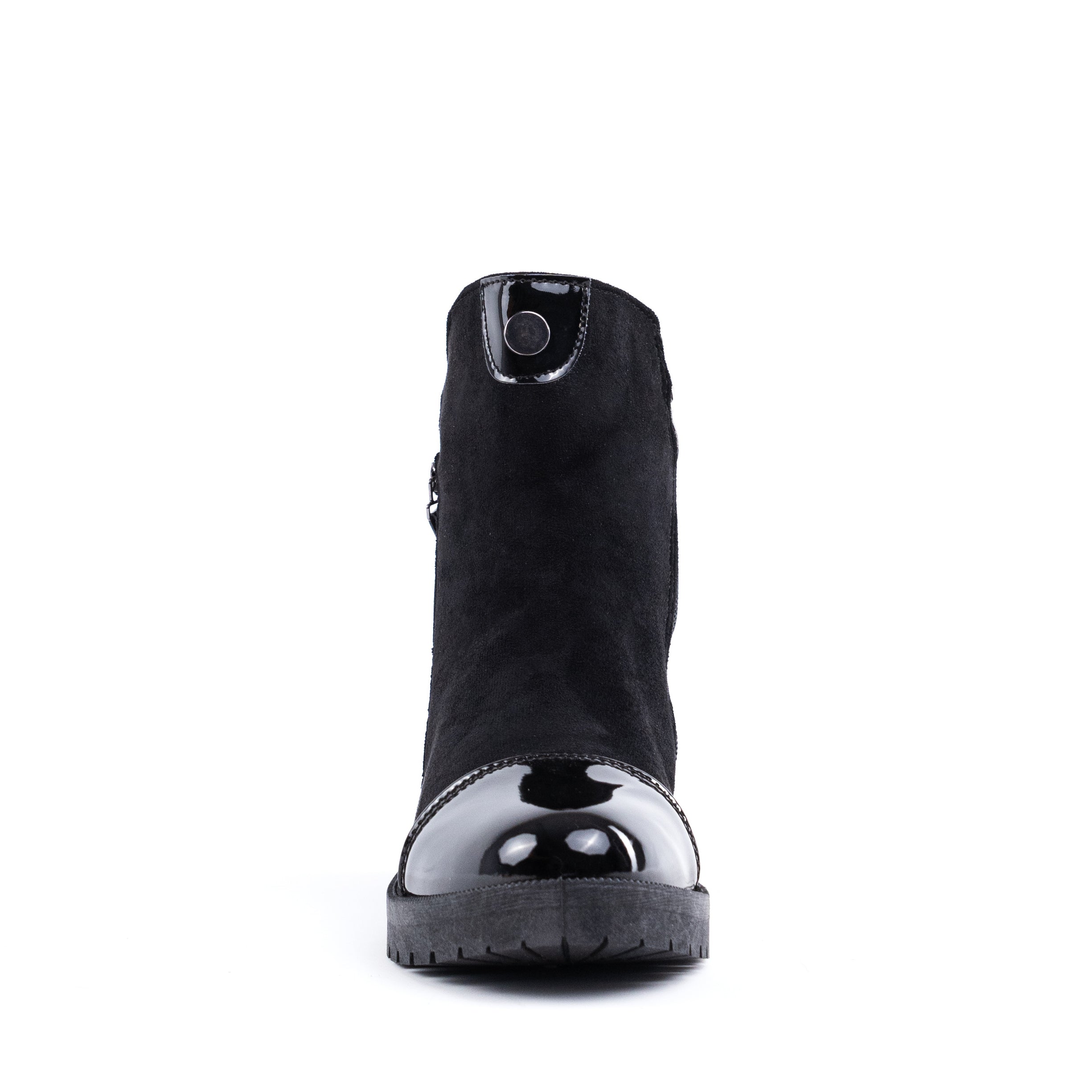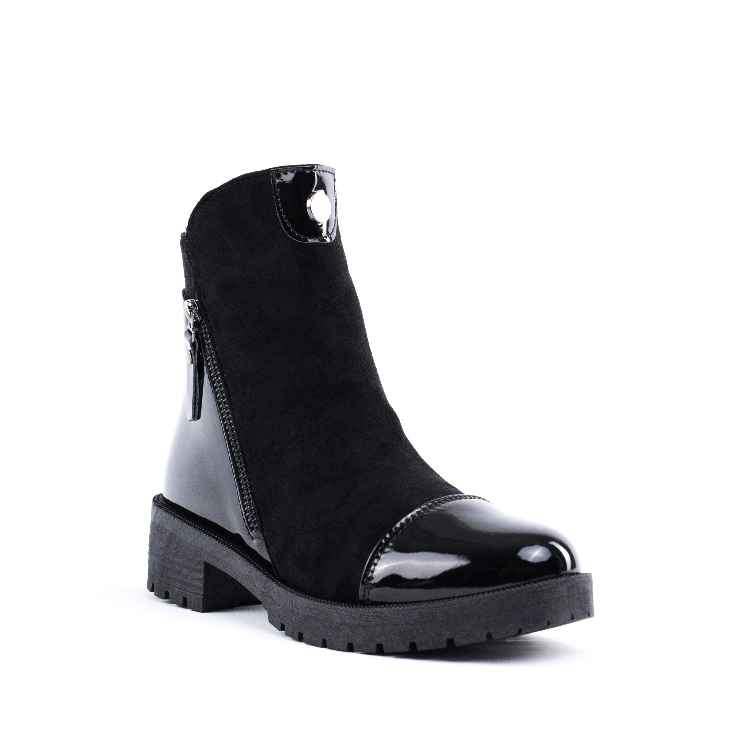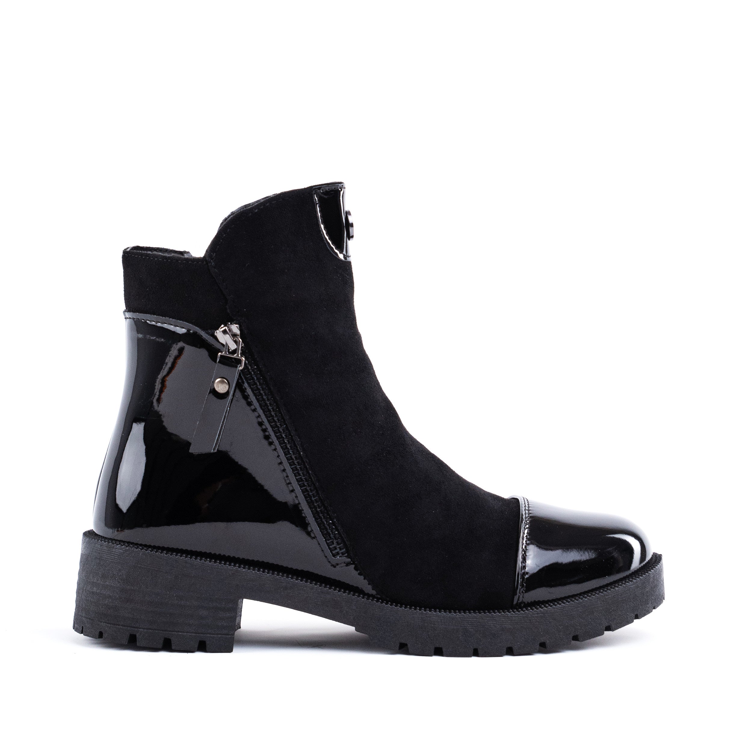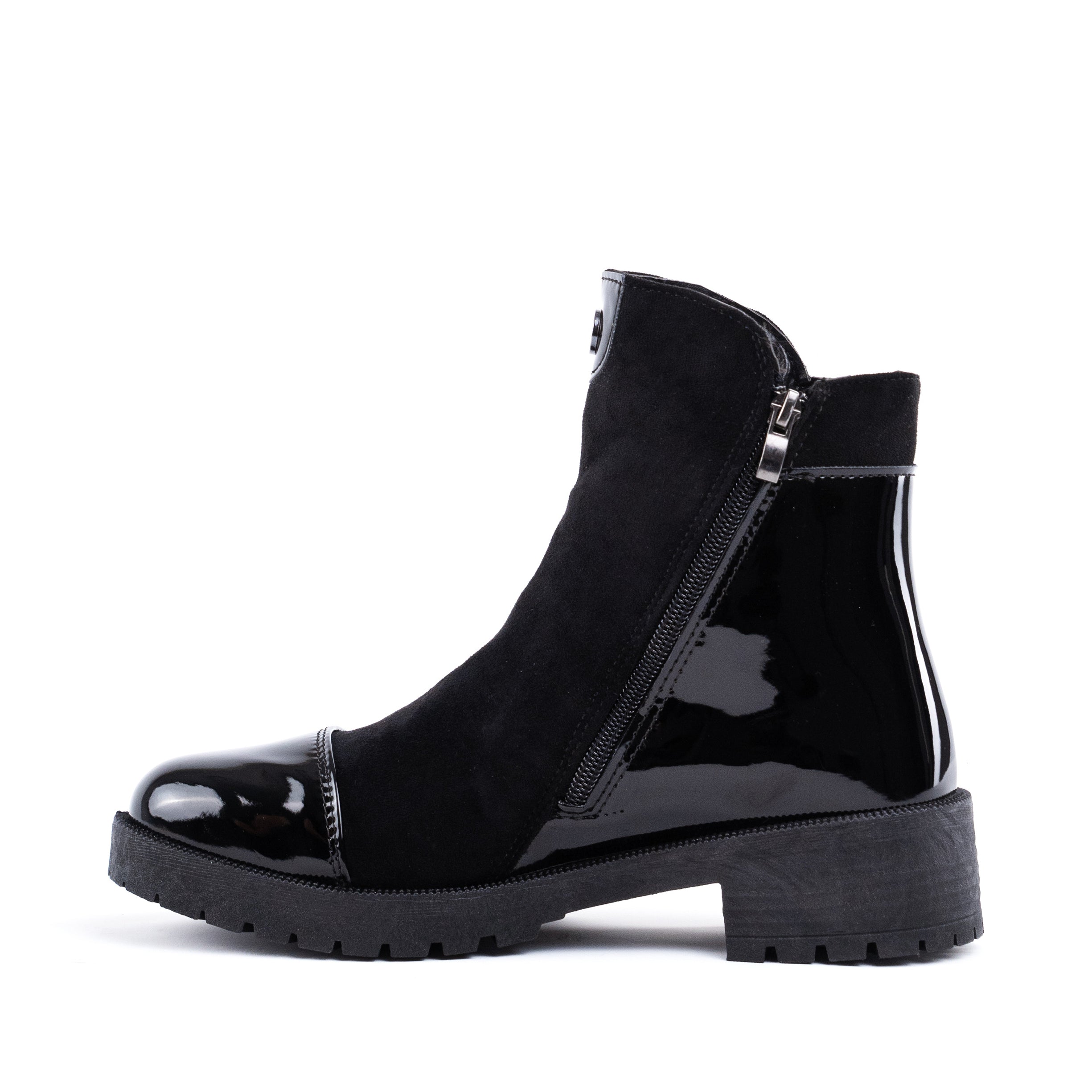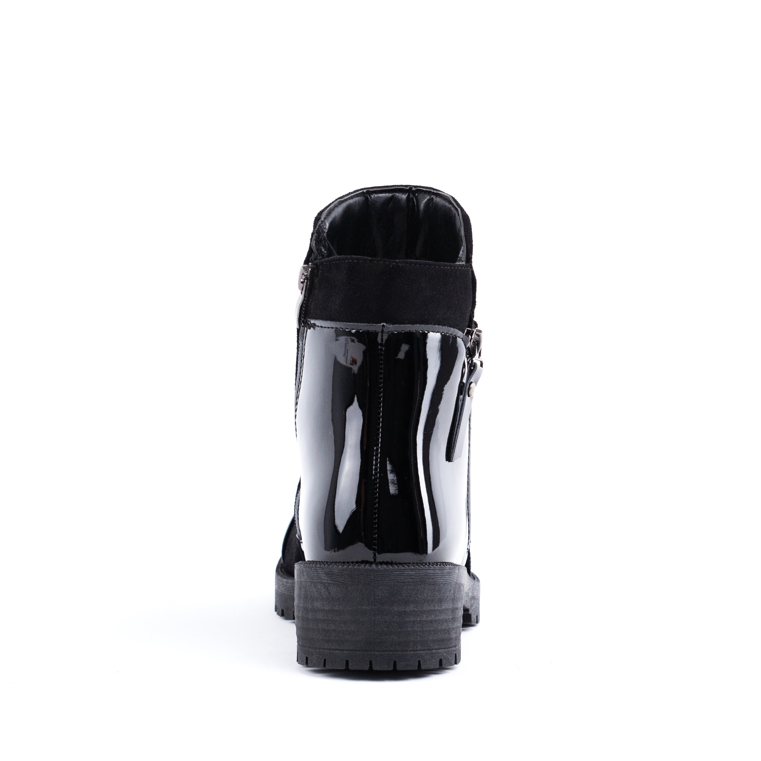 Ghetele damă negre Kisa impresionează printr-un design elegant și echilibrat, ideal pentru ținutele de zi cu zi care cer un plus de rafinament. Combinația dintre pielea ecologică lucioasă și materialul tip catifea creează un contrast modern și sofisticat, evidențiat de vârful lăcuit și detaliile discrete. Talpa de 4 cm oferă stabilitate și confort la purtare, fiind potrivită pentru utilizare zilnică, iar închiderea cu fermoar lateral asigură o încălțare rapidă și practică. Versatile și ușor de asortat, ghetele Kisa completează armonios atât ținutele casual, cât și pe cele elegante, devenind o alegere inspirată pentru sezonul rece.