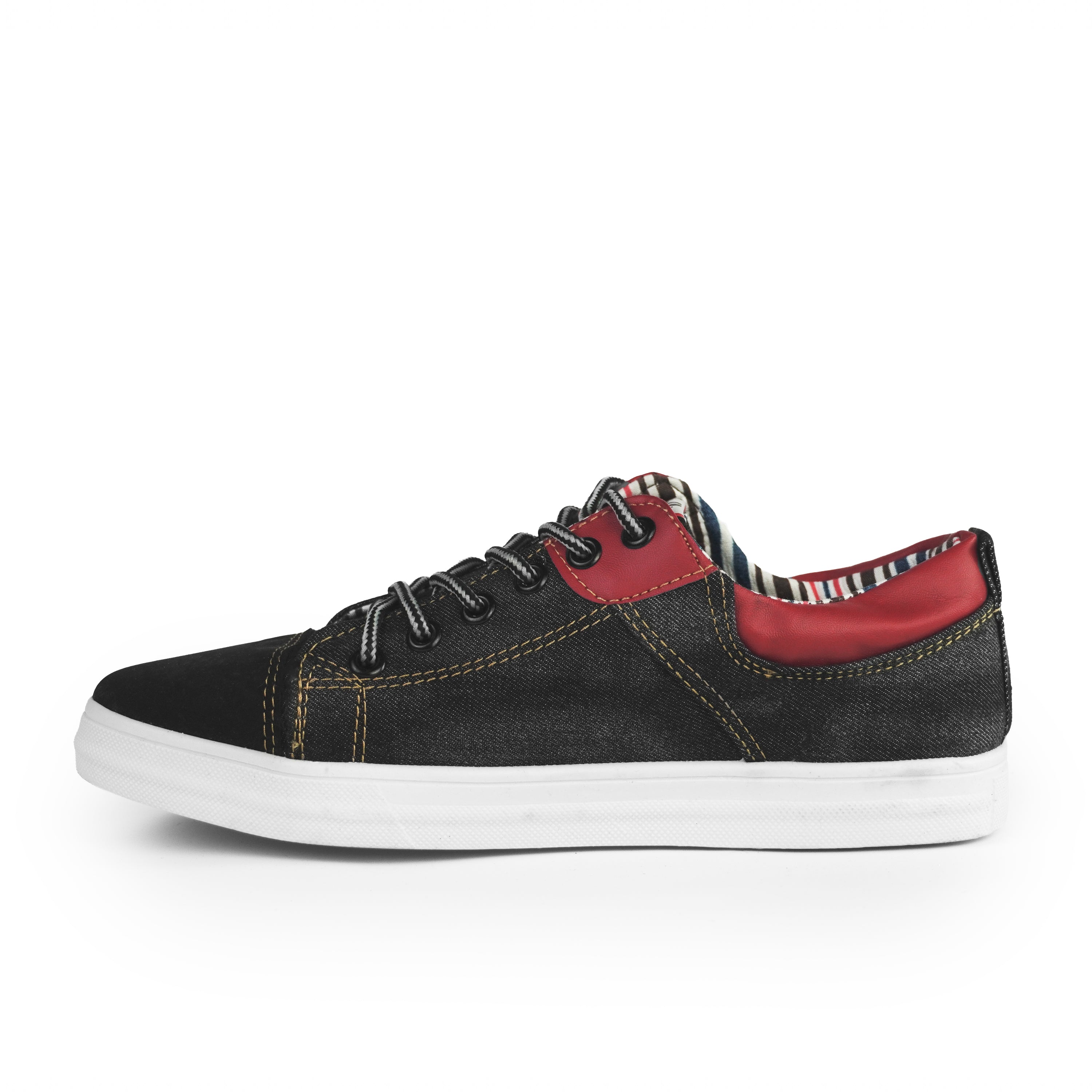 Cu un design modern, inspirat din stilul denim casual, pantofii sport bărbați negru Tobias sunt alegerea ideală pentru un look urban relaxat, dar îngrijit. Confecționați din material textil tip jeans, cu inserții contrastante din imitație de piele roșie și cusături decorative galbene, acești pantofi adaugă personalitate oricărei ținute. Talpa albă de 2,5 cm oferă confort la mers, iar șireturile bicolore subliniază atenția la detalii. Interiorul căptușit cu material textil în dungi aduce un plus de stil și prospețime. Sunt perfecți pentru plimbări, activități de zi cu zi sau ieșiri cu prietenii, fiind ușor de integrat atât în outfituri sport, cât și casual-smart. Dacă îți dorești un model versatil, cu un aer fresh și detalii unice, pantofii Tobias sunt exact ce cauți.