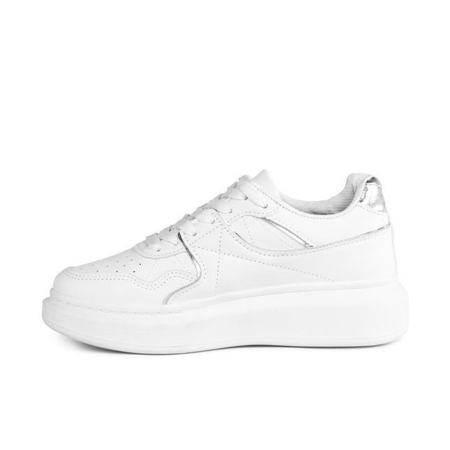 Dacă ești în căutarea unui model dinamic, ușor și modern, pantofii sport Dax sunt alegerea ideală. Realizați dintr-o combinație de piele ecologică și material textil respirabil, aceștia oferă confort sporit și un aspect fresh. Interiorul roz pudrat adaugă un strop de feminitate, iar talpa groasă de 4 cm cu bule de aer încorporate asigură un plus de susținere și stil. Detaliile grafice metalizate contribuie la un look urban perfect pentru plimbări, ieșiri casual sau ținute de zi.
