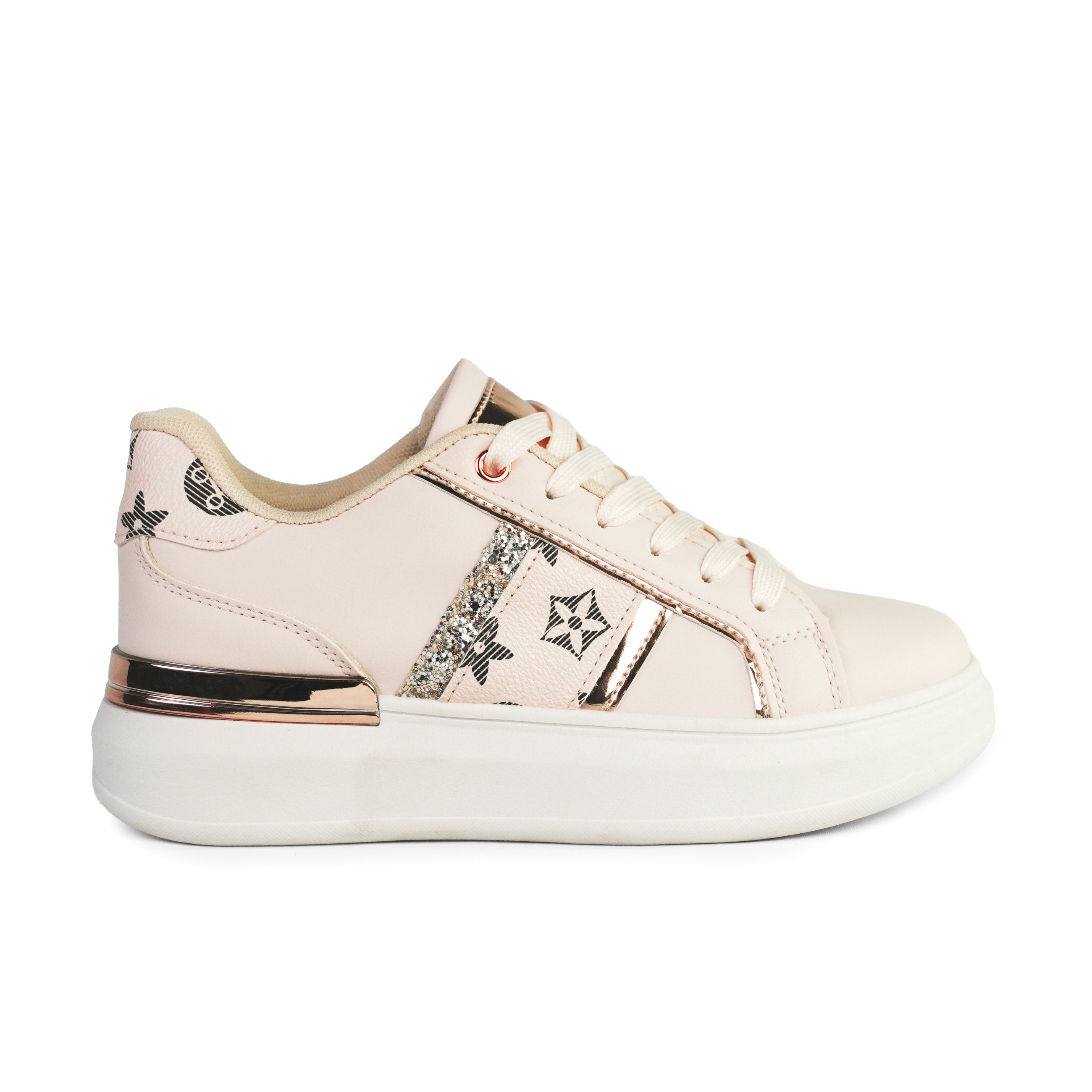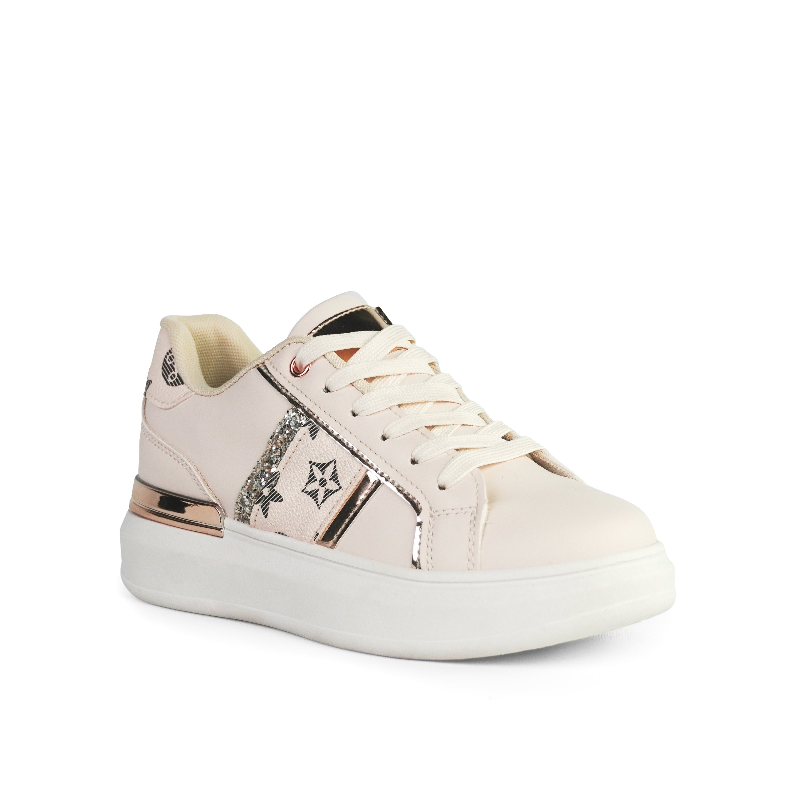 Pantofii sport bej Rhea sunt definiția unui stil casual-elegant perfect adaptat sezonului cald. Designul modern, în nuanțe delicate de bej, este pus în valoare de accentele metalice rose gold și detaliile strălucitoare cu glitter, oferindu-le un aer feminin și rafinat. Talpa groasă de 4 cm adaugă confort și un plus de înălțime, iar textura moale a materialului ecologic contribuie la un mers lejer, ideal pentru întreaga zi. Elementele grafice discrete conferă personalitate modelului, fără a încărca vizual. Se potrivesc de minune atât cu rochii vaporoase, cât și cu jeanși sau fuste casual, fiind alegerea perfectă pentru ținutele tale de vară cu un strop de glamour.