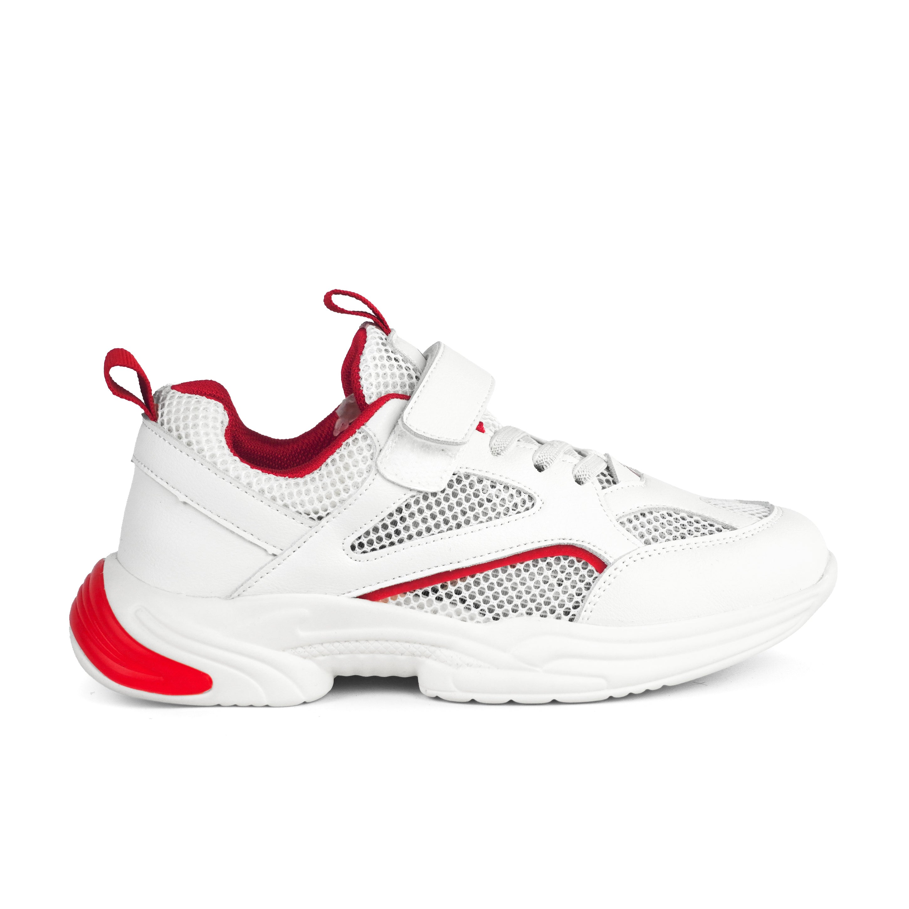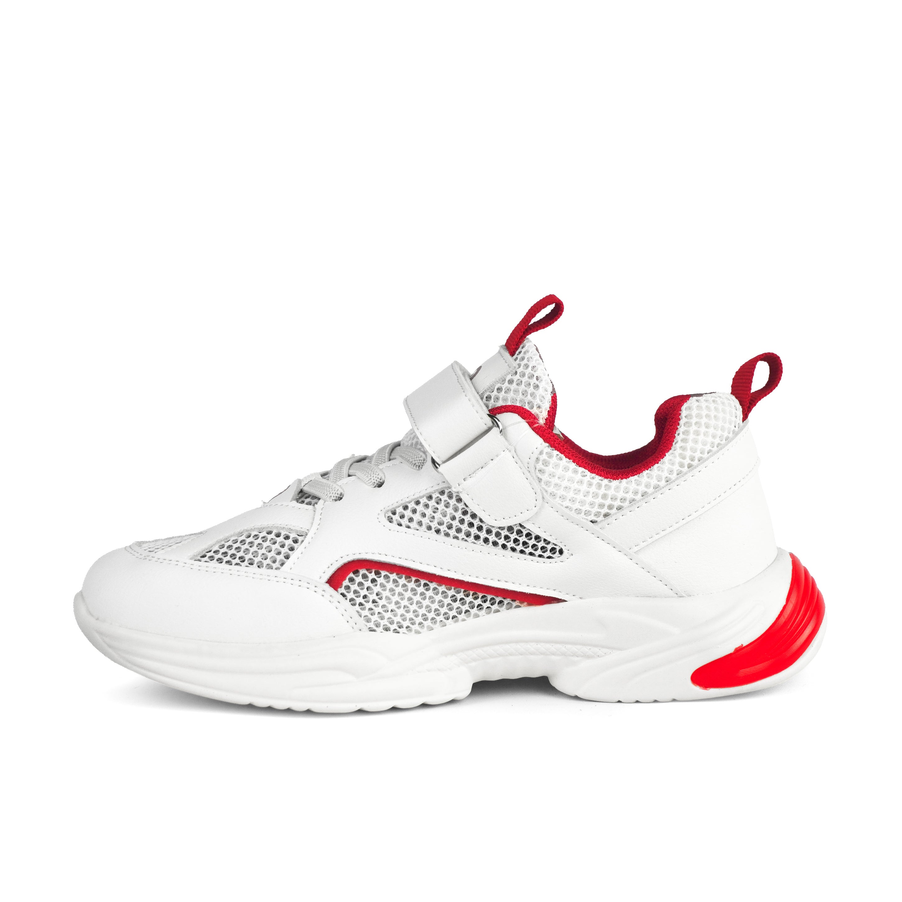 Pantofii sport pentru fete alb Ruby sunt ideali pentru activitățile zilnice și un stil dinamic plin de energie. Realizați din piele ecologică de calitate combinată cu material textil tip plasă pentru aerisire, aceștia asigură confort sporit și respirabilitate pe durata purtării. Talpa ușoară de 3 cm oferă stabilitate și amortizare la mers, potrivindu-se perfect pentru orele de sport, școală sau plimbări. Sistemul de închidere cu șiret și bandă cu scai facilitează încălțarea rapidă și fixarea sigură pe picior. Designul alb este modern și versatil, completat discret cu accente roșii pentru un aspect sportiv și atrăgător. Un model rezistent, confortabil și practic, potrivit pentru fetițele active care au nevoie de încălțăminte sport fiabilă și plăcută la purtare.