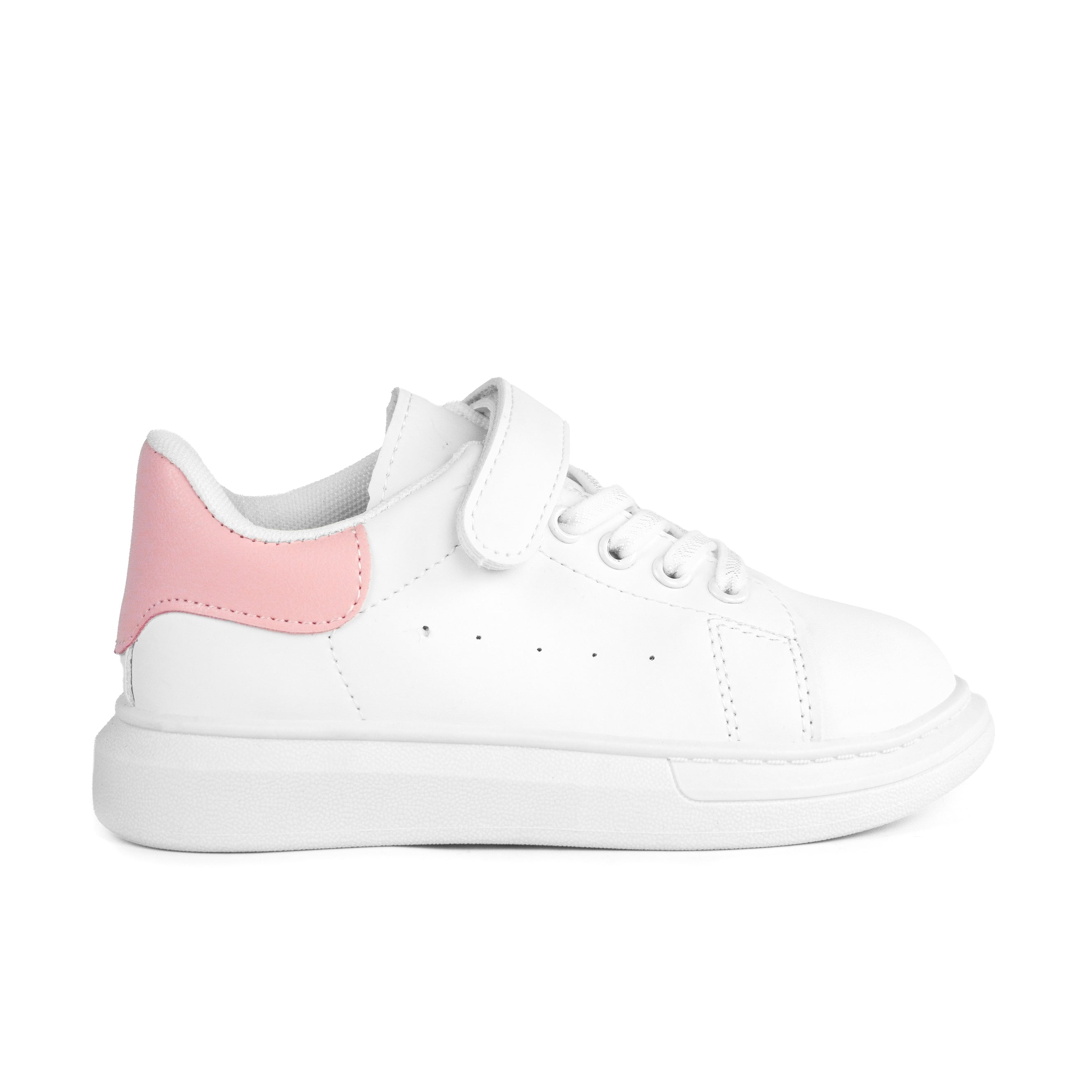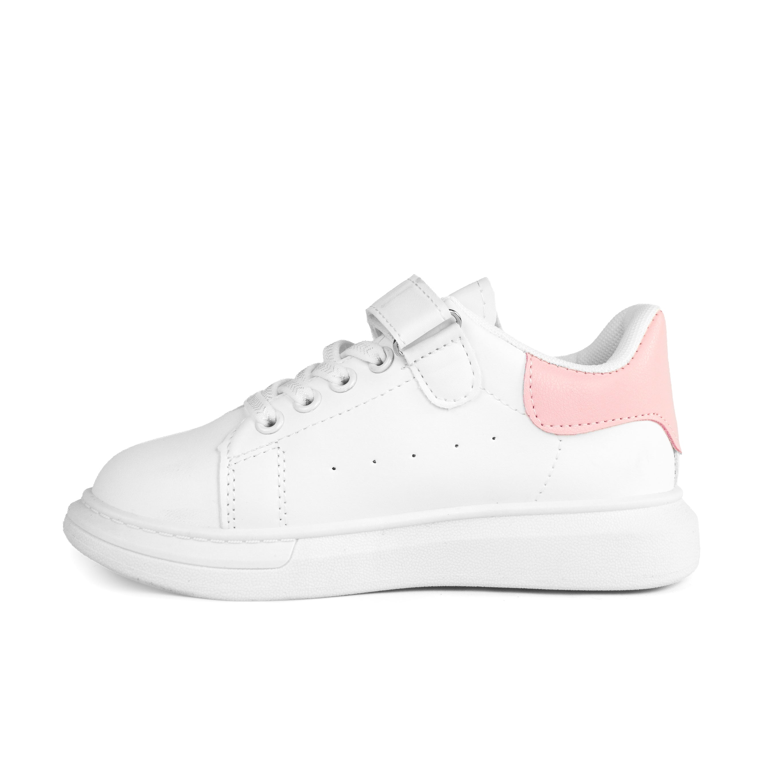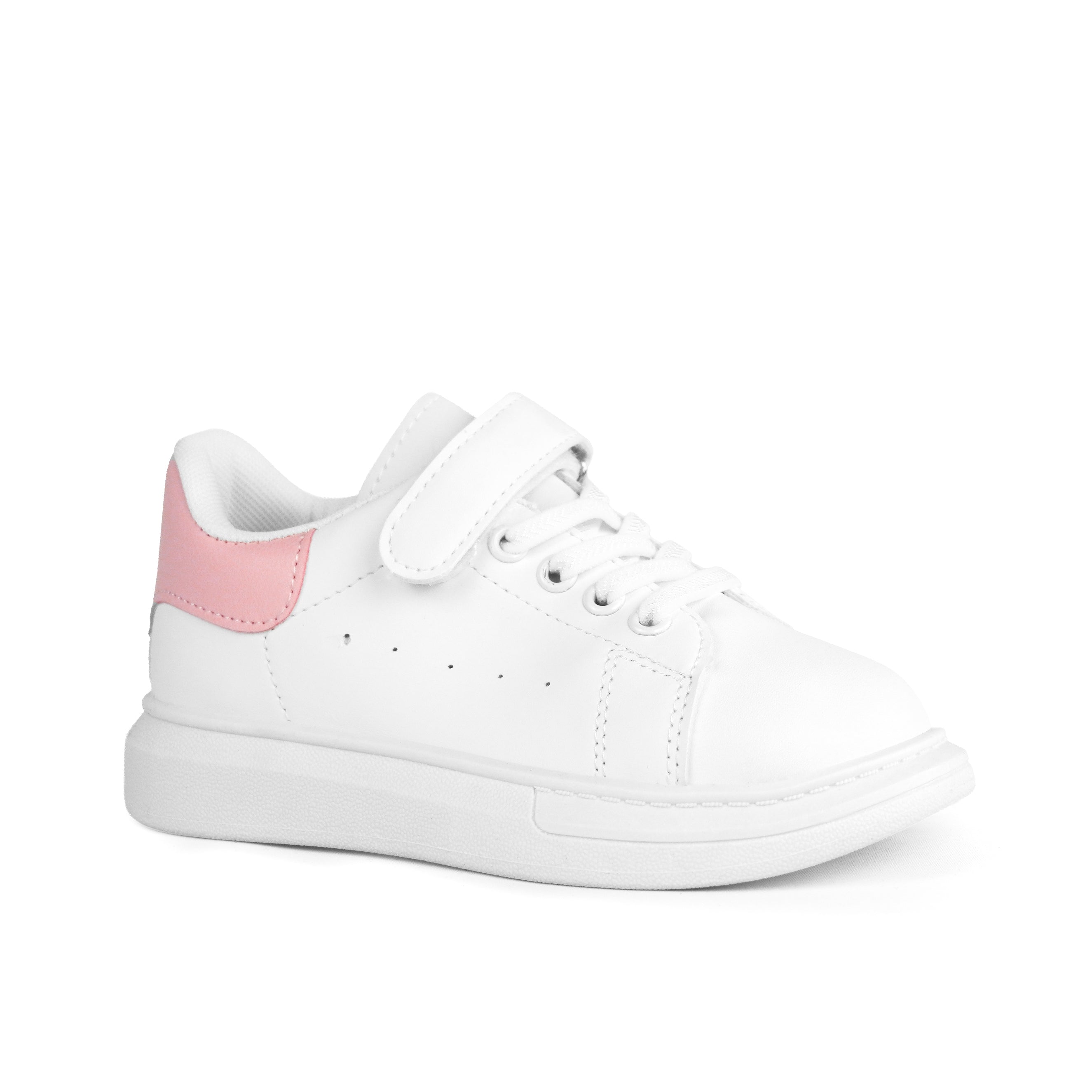 Pantofii sport pentru fete alb Shay sunt un model modern, simplu și versatil, ideal pentru purtare zilnică. Realizați din piele ecologică de calitate, sunt rezistenți și ușor de curățat, oferind un aspect îngrijit în orice moment. Talpa de 3 cm este confortabilă și asigură susținere optimă la mers, iar închiderea practică cu șiret și scai permite o fixare sigură și adaptată fiecărui picior. Designul alb este completat discret de detalii roz la spate, care adaugă o notă feminină și delicată. Pot fi purtați la școală, plimbări sau activități casual, fiind ușor de asortat cu orice ținută – de la jeanși și colanți până la rochițe sport. Un model comod și elegant, perfect pentru fetițele care preferă un stil curat și modern.