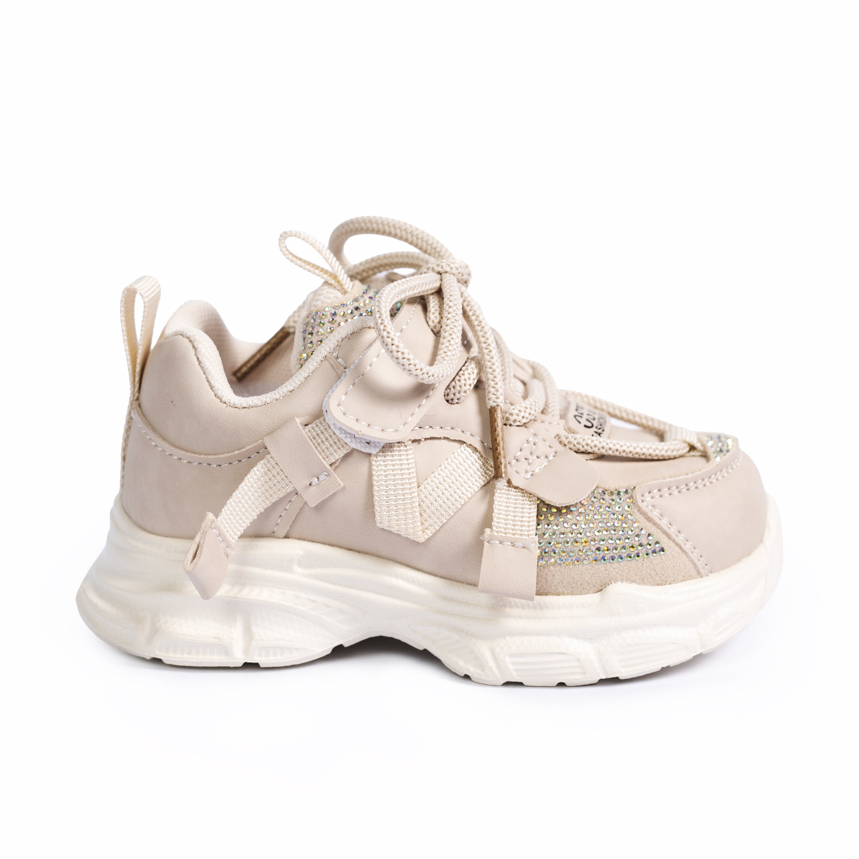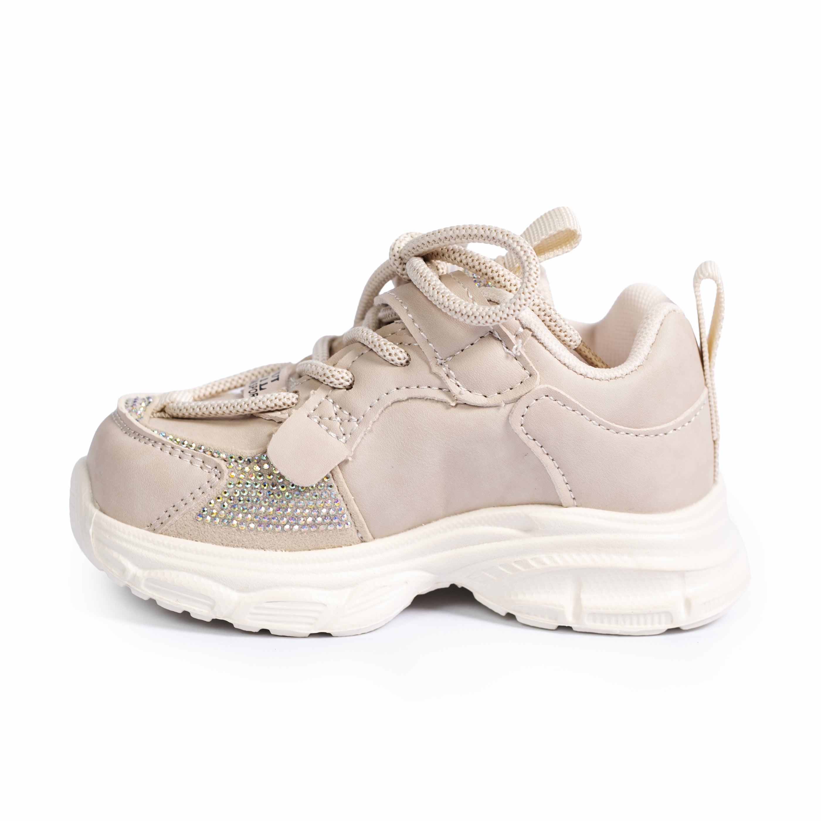 Pantofii sport Elory în nuanță bej sunt alegerea ideală pentru fetițele care își doresc un look modern și feminin, fără să renunțe la confort. Designul este plin de personalitate, cu detalii decorative strălucitoare și benzi aplicate care adaugă un plus de stil. Construiți din piele ecologică moale, acești pantofi oferă o senzație plăcută la purtare și o flexibilitate excelentă, fiind potriviți pentru joacă, plimbări sau activități zilnice. Închiderea cu șiret și scai asigură o fixare sigură și rapidă, ușor de manevrat chiar și de către cei mici. Talpa ușor înaltă de 2 cm este gândită pentru a oferi susținere, aderență și o bună amortizare la fiecare pas. Combinând funcționalitatea cu un aspect jucăuș și rafinat, modelul Elory este perfect pentru a însoți micile fashioniste în orice aventură.