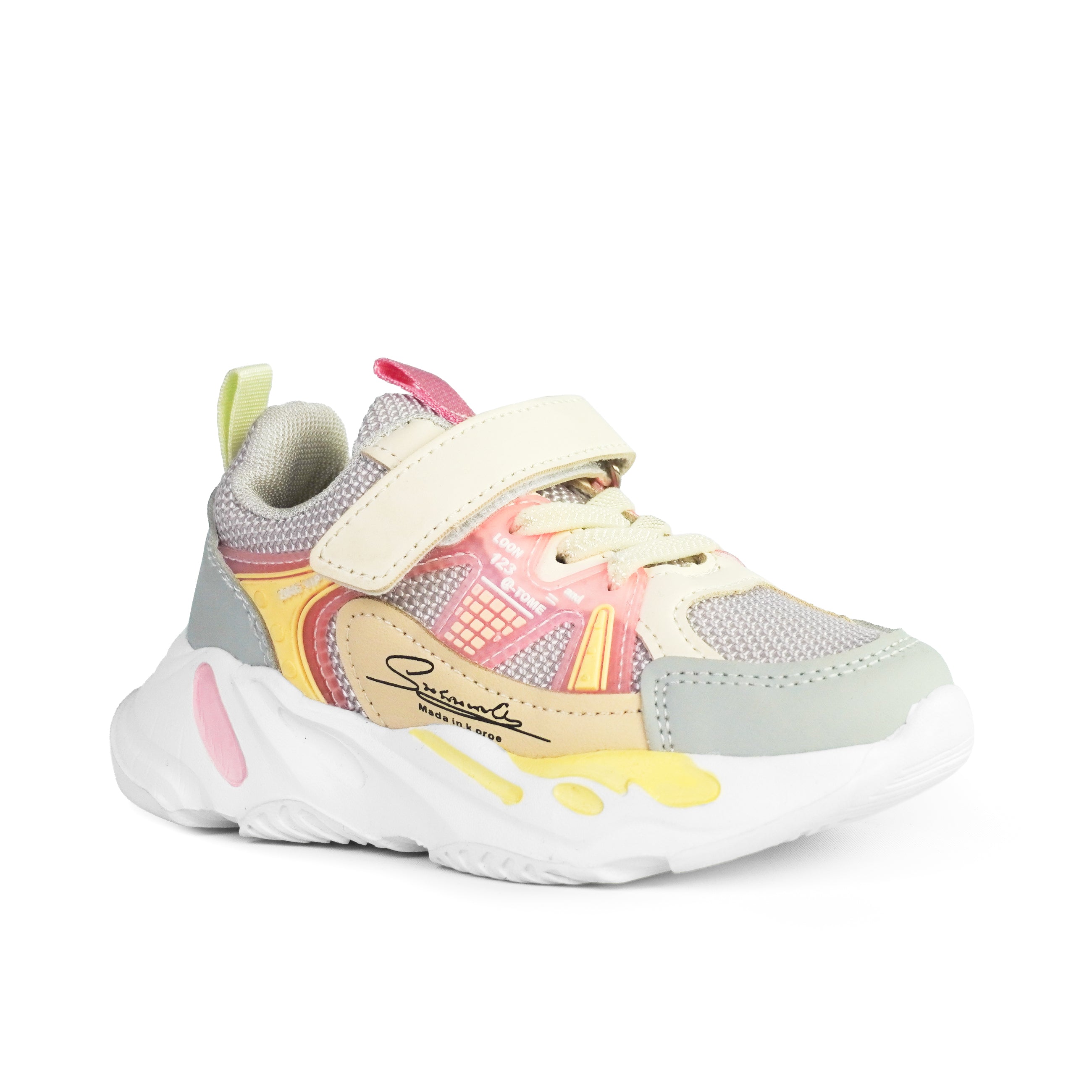 Pantofii sport pentru fete gri Abby sunt alegerea ideală pentru micile domnișoare care își doresc confort, libertate de mișcare și un look modern. Designul lor combină tonurile neutre de gri cu accente pastelate de roz, galben și crem, ceea ce îi face versatili și ușor de asortat la orice ținută casual sau sport. Realizați din piele ecologică de calitate și material textil respirabil, acești pantofi permit piciorului să se simtă lejer și aerisit pe tot parcursul zilei. Talpa groasă, cu înălțimea de 3,8 cm, oferă susținere și stabilitate la fiecare pas, fiind perfectă pentru activitățile de zi cu zi. Închiderea practică cu șiret și scai asigură o fixare sigură și rapidă, adaptată ritmului copiilor mereu activi. Branțul moale și interiorul plăcut la atingere sporesc confortul, prevenind oboseala picioarelor. Stilul sport și detaliile dinamice îi transformă într-un model atractiv pentru școală, joacă sau plimbări. Sunt ușori, rezistenți și gândiți să reziste la purtări repetate. Cu Abby, fiecare pas devine mai colorat și mai plin de energie.